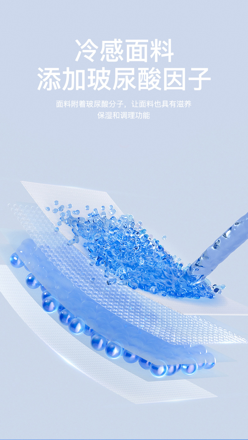 ▸添加玻尿酸因子,冷感面料附著玻尿酸分子,也具有滋養保濕和調理的功能。