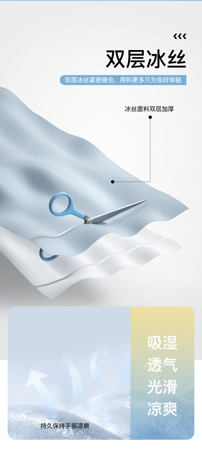 ▸雙層冰絲緊密縫合,吸濕透氣,光滑涼爽。