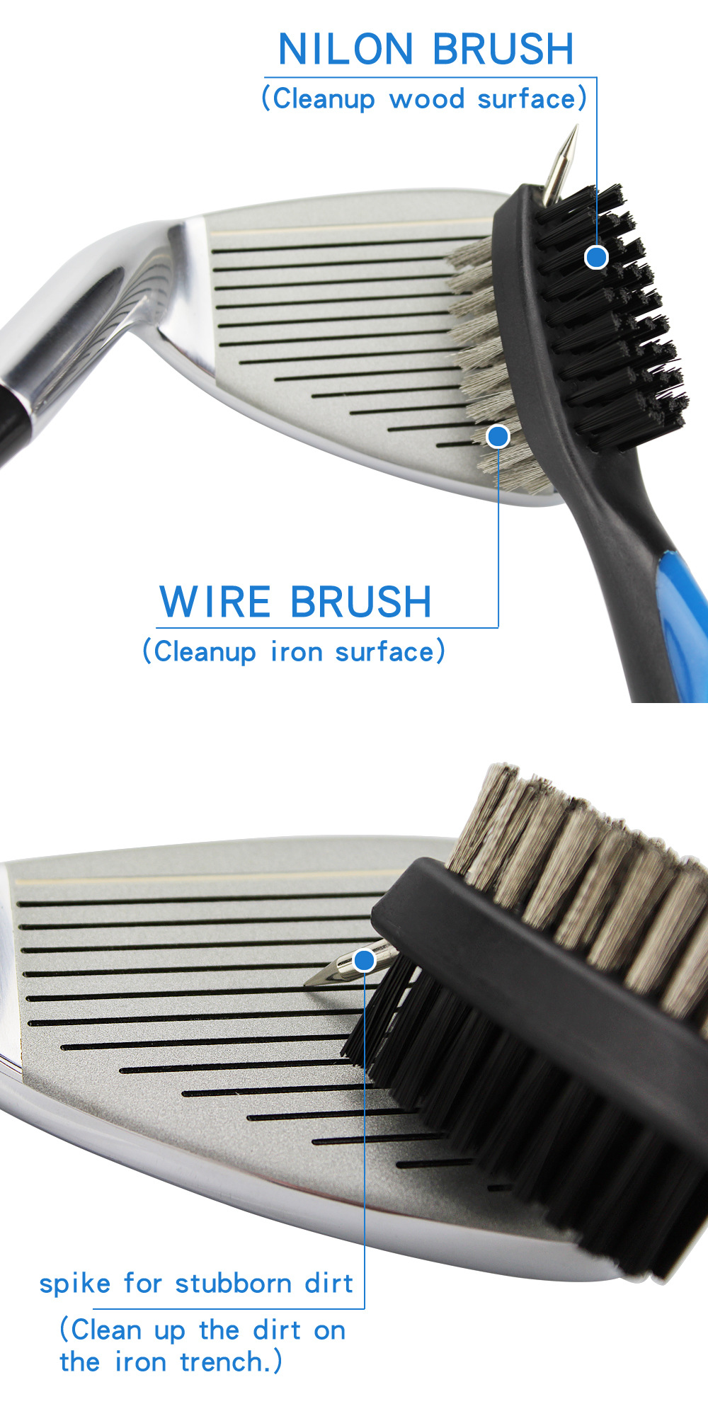 ▸帶有長釘,可以清潔溝里的污垢。