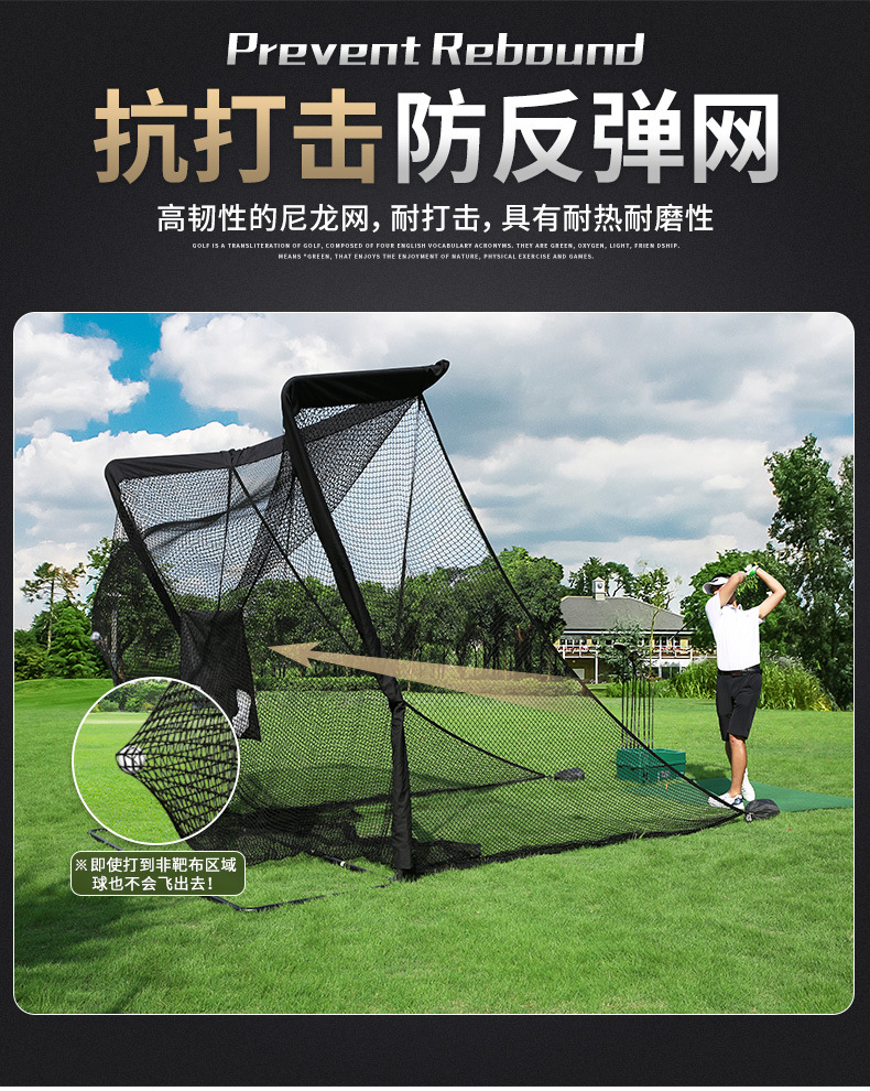 ▸防護大網設計,Z型頂端與兩側起到防護作用,避免球飛出,安全且更穩固。▸配有多功能靶布,可以練習各種球桿:1號木、7號鐵、切桿。▸抗打擊防反彈網,高韌性尼龍網耐擊打,還具有耐熱耐磨性。▸收納方便,家裡、學校、室內外都可以隨時拿出練習。