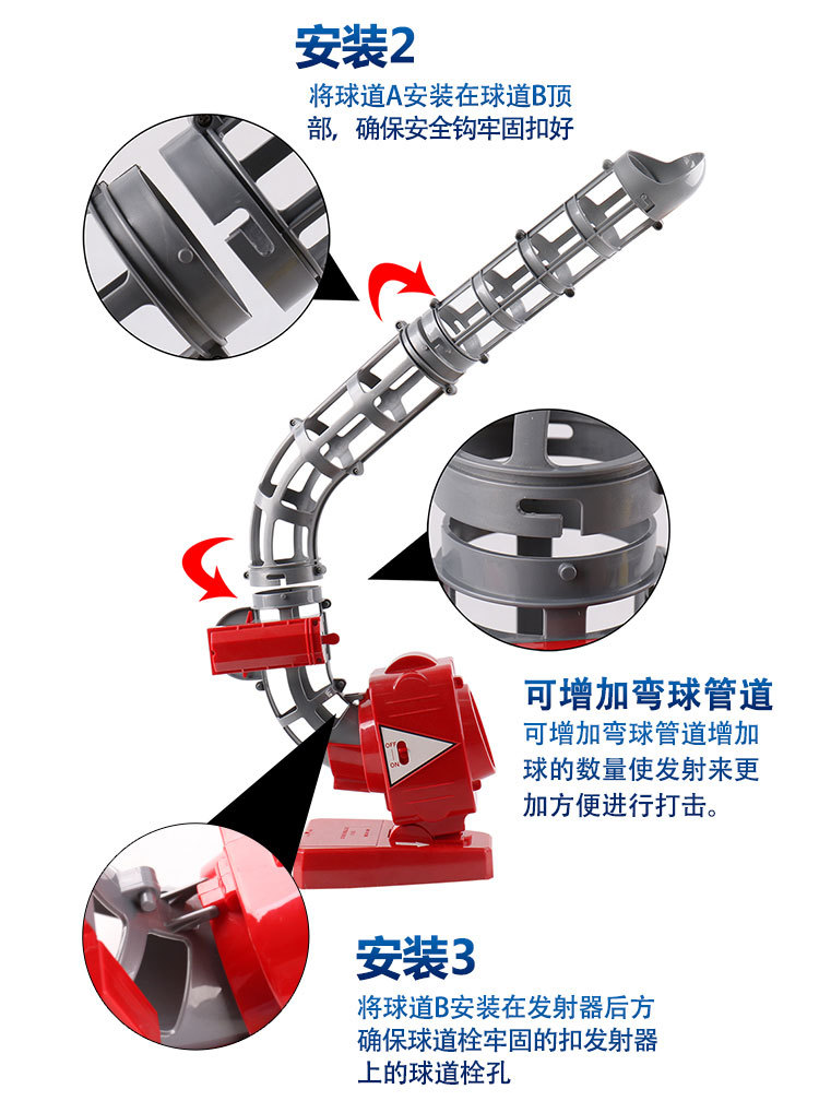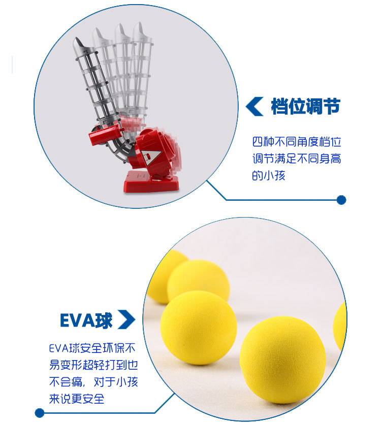 ▸配有可伸縮擊球棒,結實耐用,方便攜帶。再配有EVA球,環保無毒無味,不易變形,打到也不會痛。▸保護設計,如小朋友不小心將手置入發球口,發球機不會發射。▸四種不同角度檔位可調節,滿足不同身高的小孩。▸採取扣裝的安裝方式,可以更快捷睇安裝於拆除。