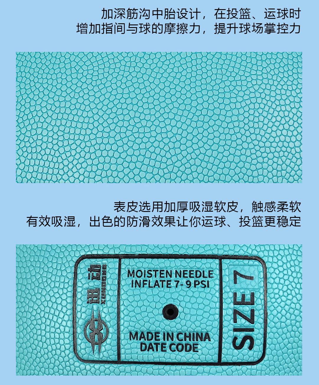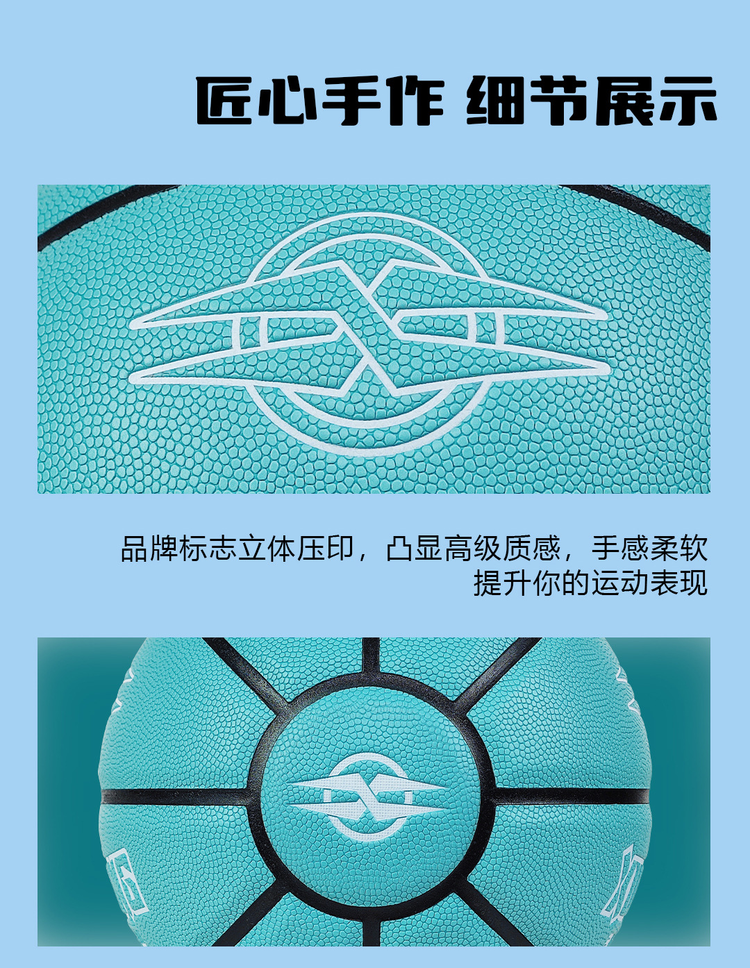▸表皮選用加厚吸濕軟皮,觸感柔軟,有效對付手掌出汗,防滑效果號,投籃更穩定。