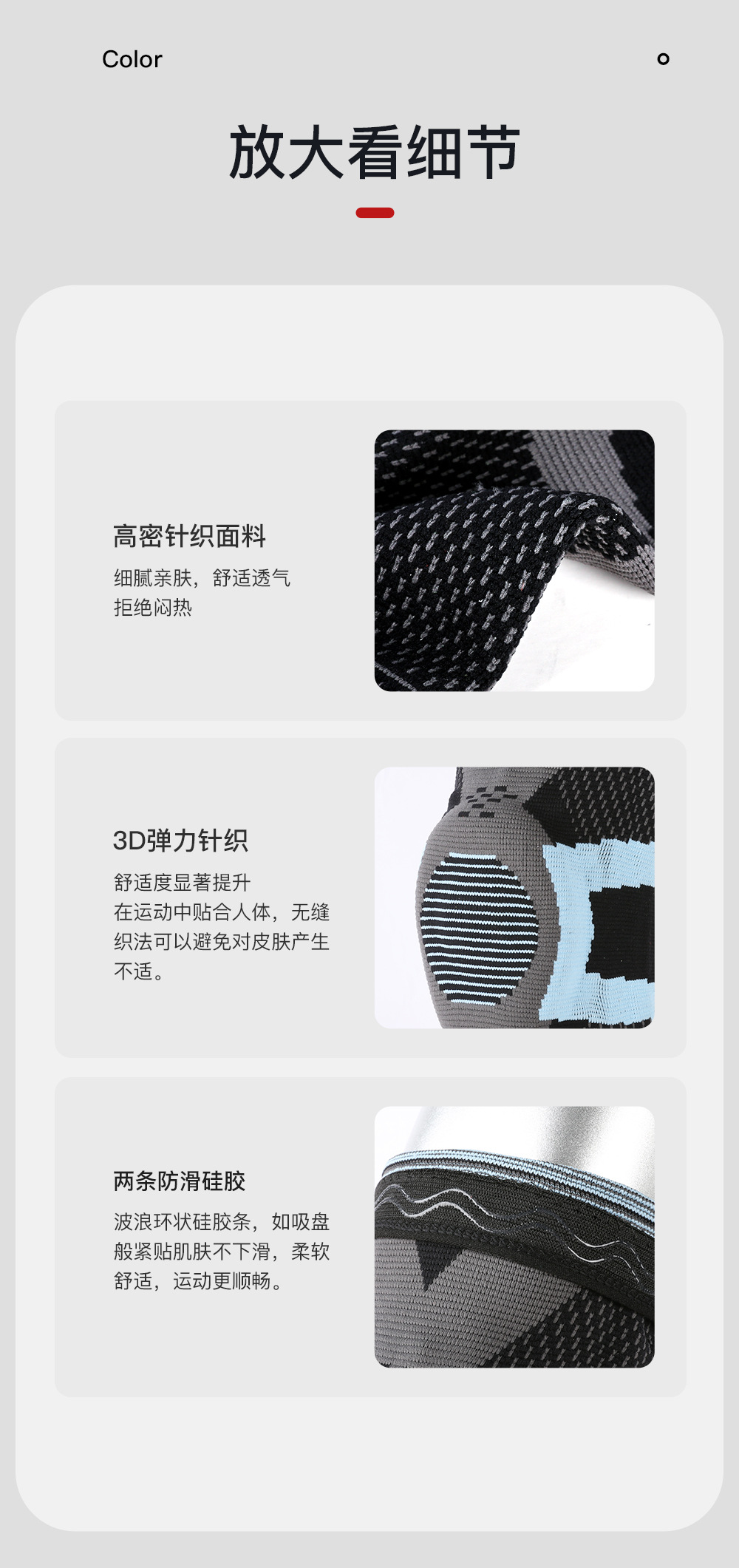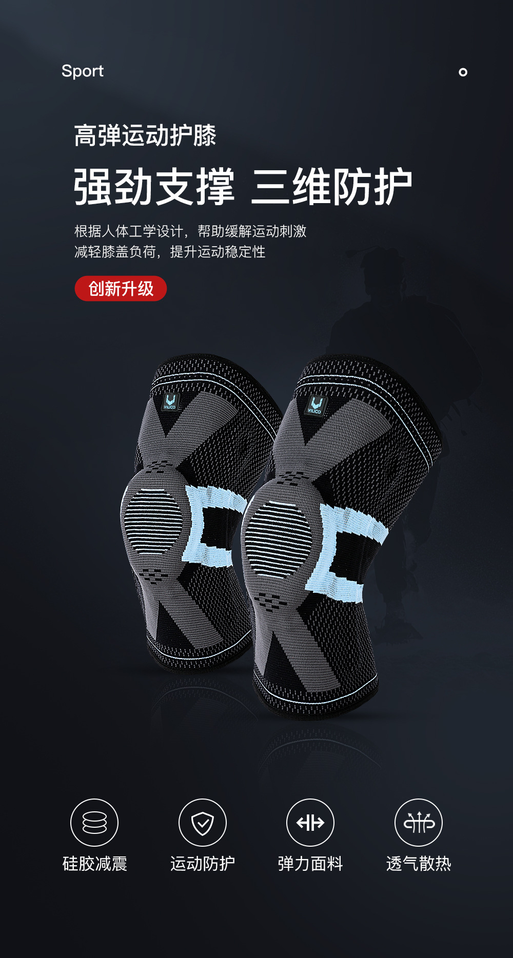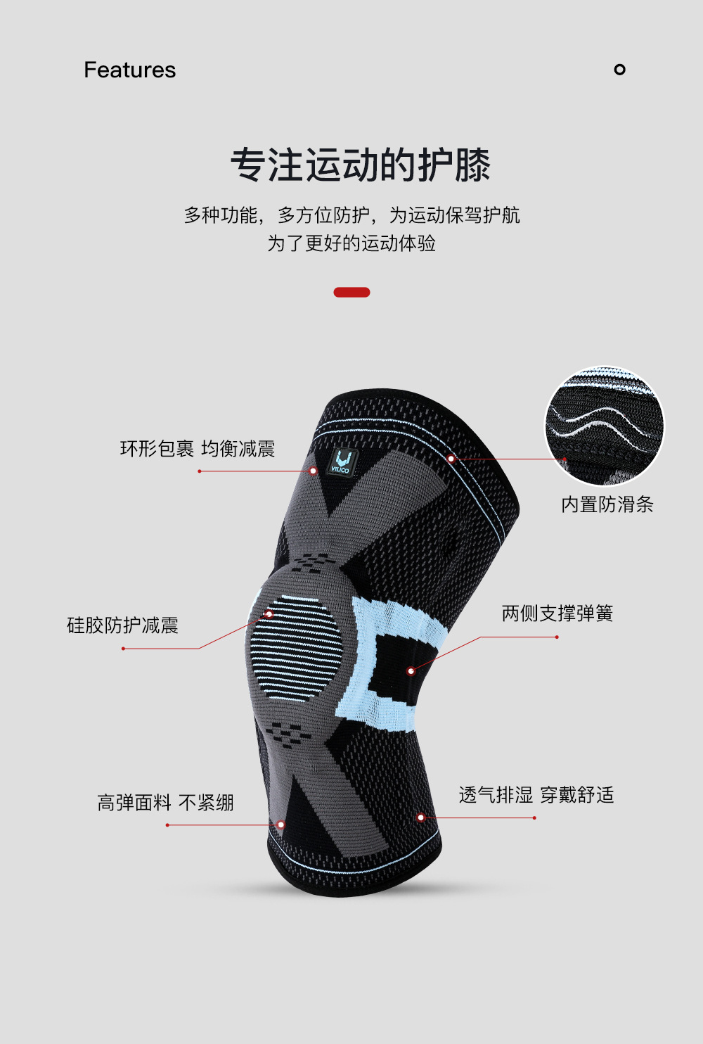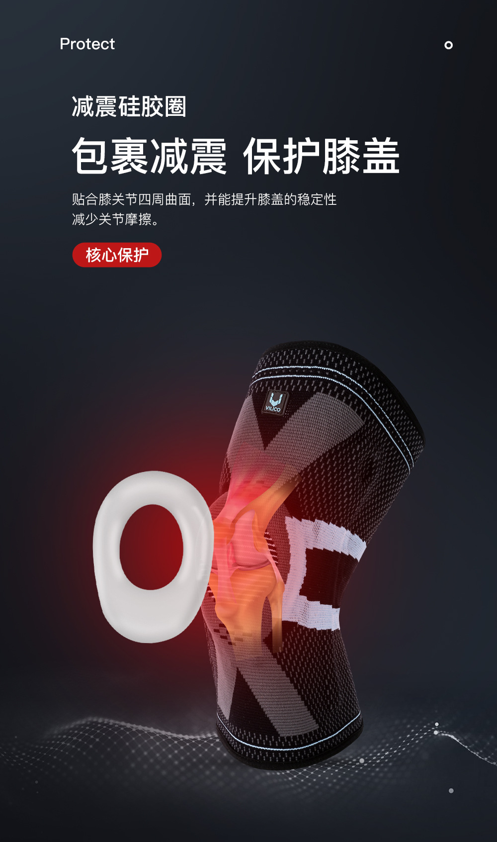 ▸減震硅膠圈,貼合膝關節四周曲面,減少關節摩擦,保護膝蓋。