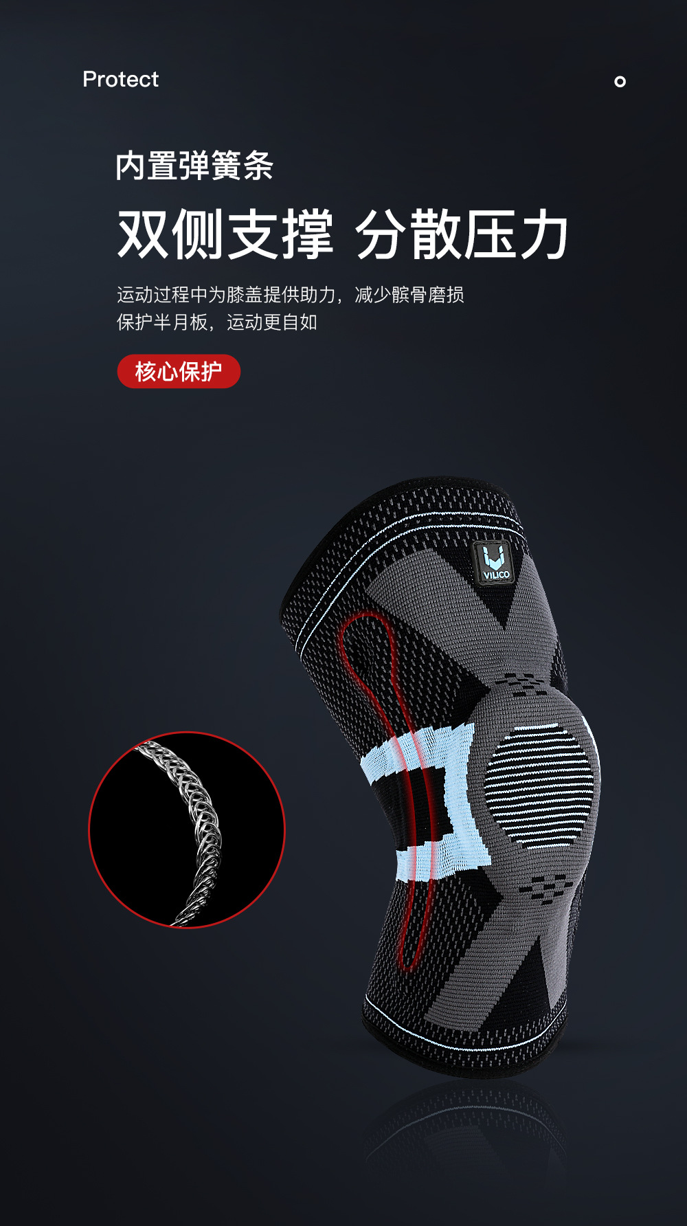 ▸內置彈簧條,運動過程中為膝蓋提供助力,減少磨損,運動更流暢自如。
