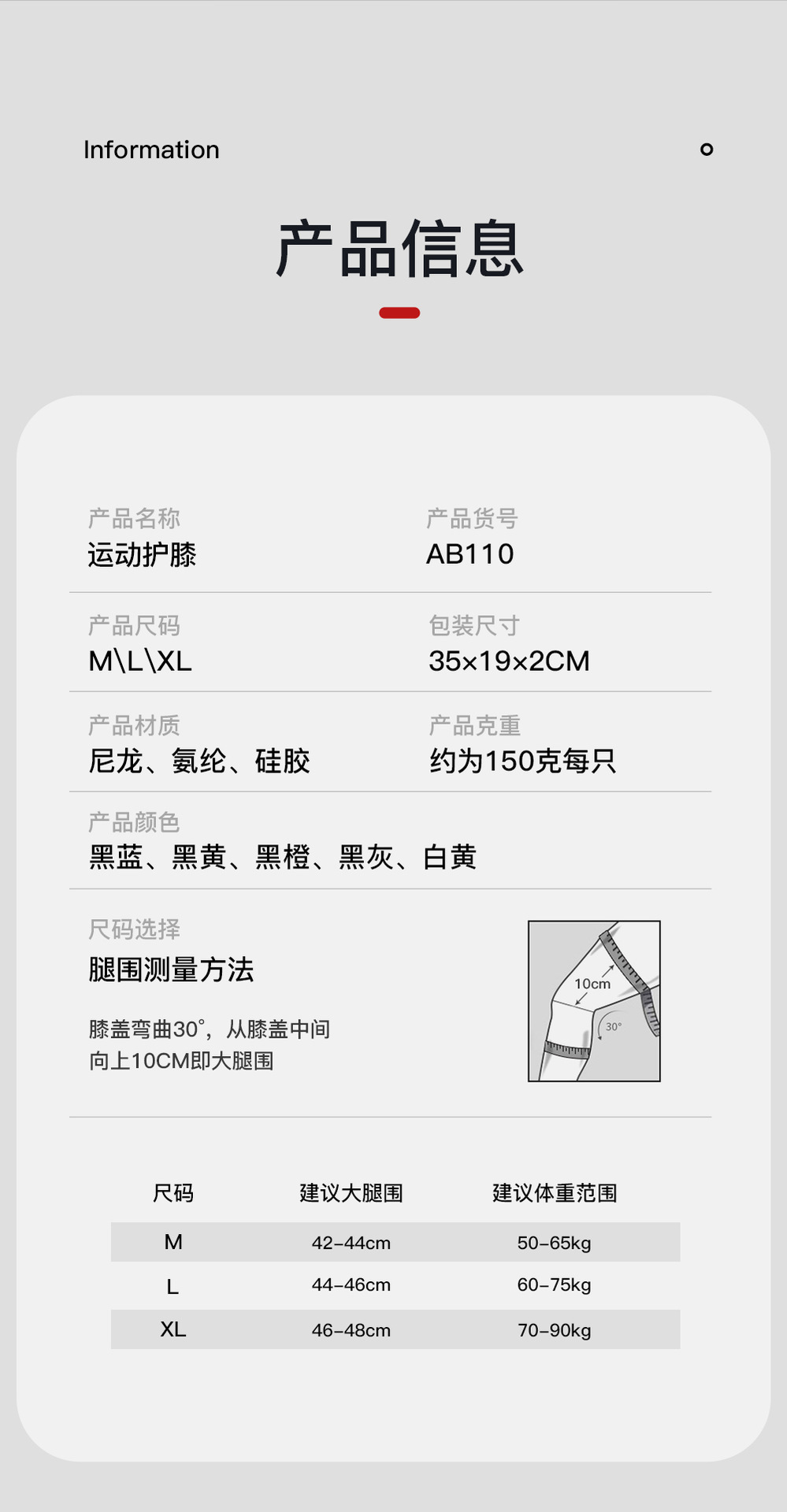 產品:單只高彈運動護膝