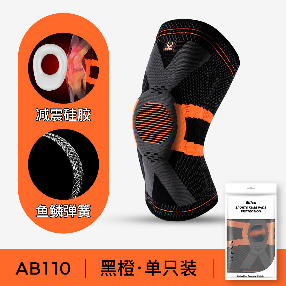 • 單只高彈運動護膝夏季專業跑步登山籃球運動護膝彈簧針織透氣防滑半月板護具