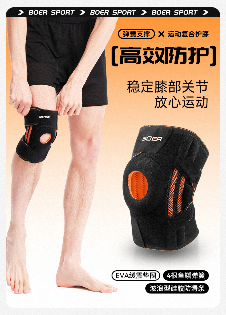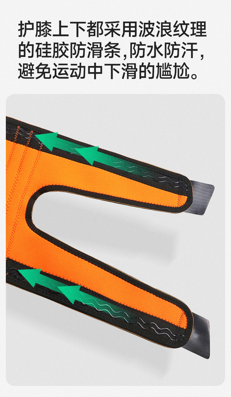 ▸護膝上下採用波浪紋理的硅膠防滑條,防水防汗,避免運動中下滑。