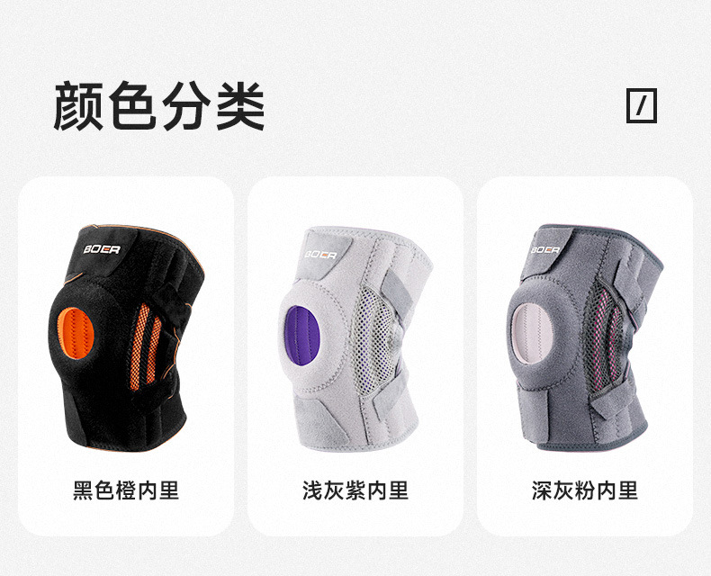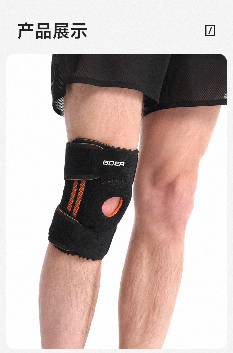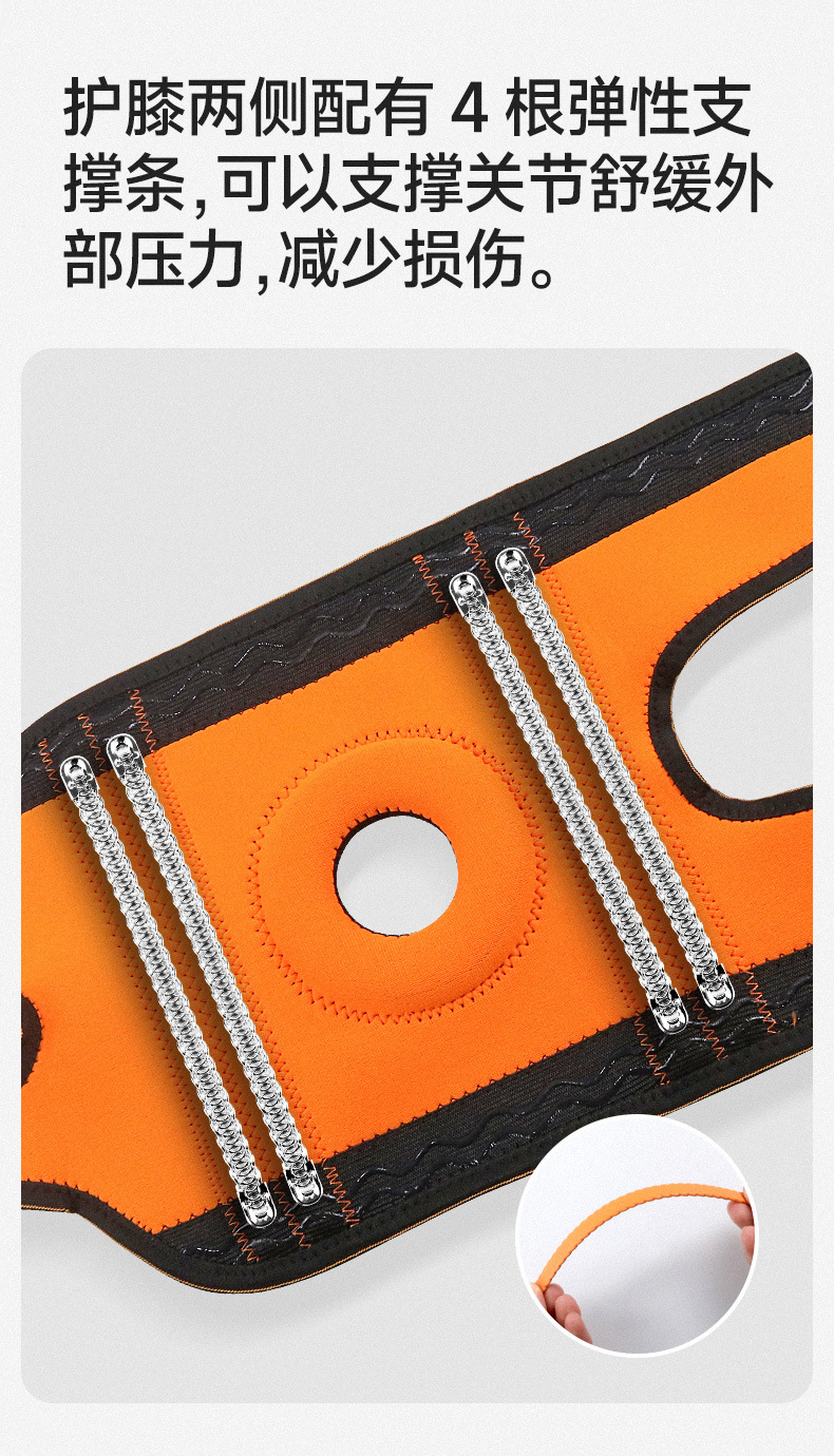 ▸護膝兩側配有四根彈性支撐條,可以支撐關節,舒緩外部壓力,減少損傷。