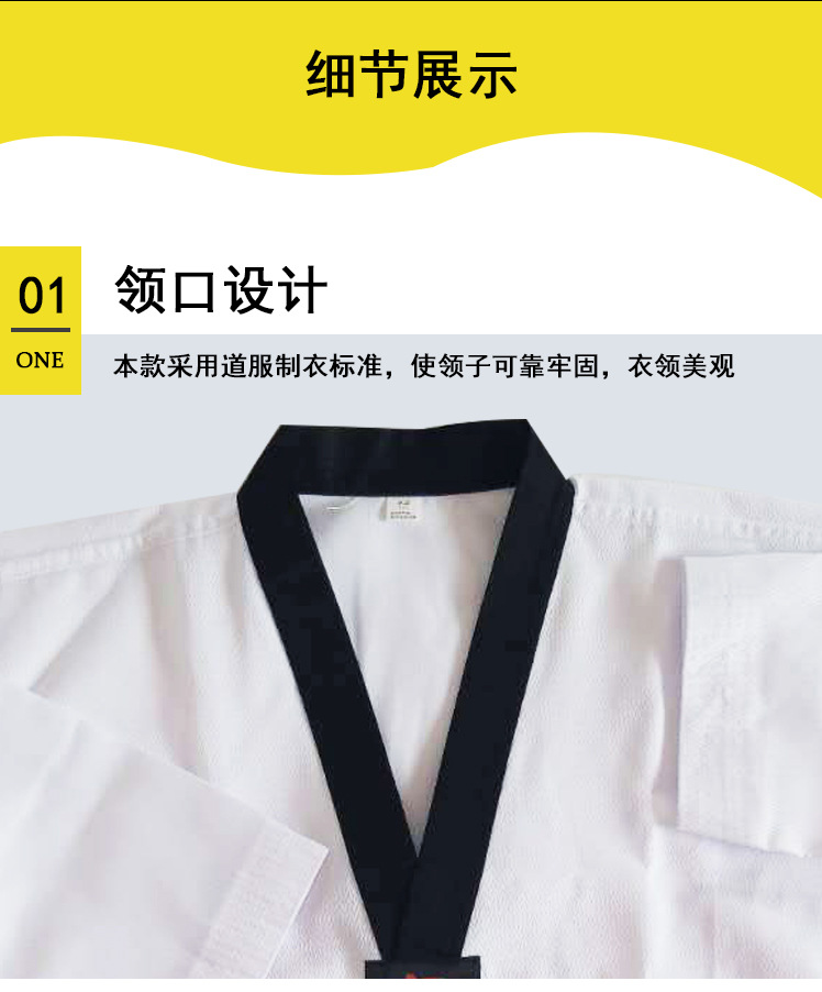 ▸採用道服製衣標準,衣領美觀,可靠牢固。