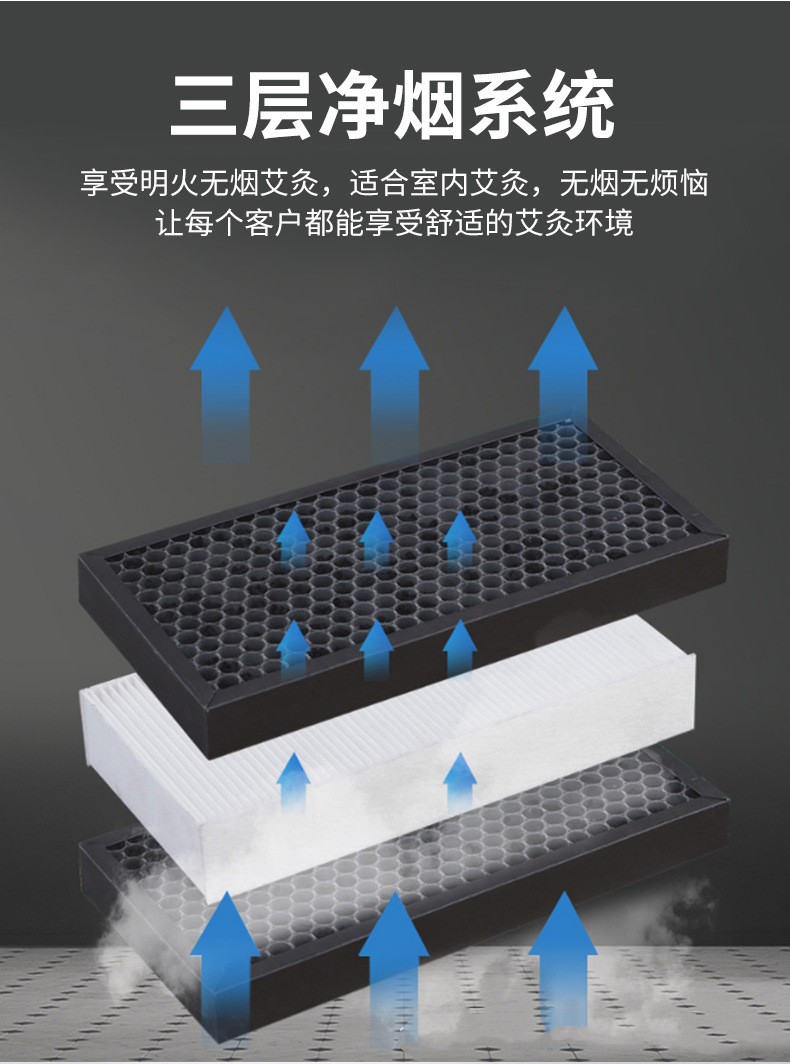 ▸三層淨煙系統,享受明火無煙艾灸,適合室內使用。