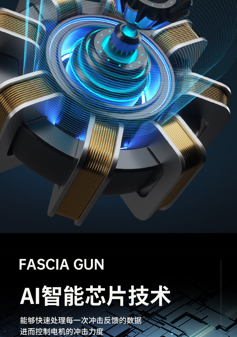 ▸AI智能芯片技術,能夠快速處理每次衝擊反饋的數據,進而控制電機的衝擊力度。