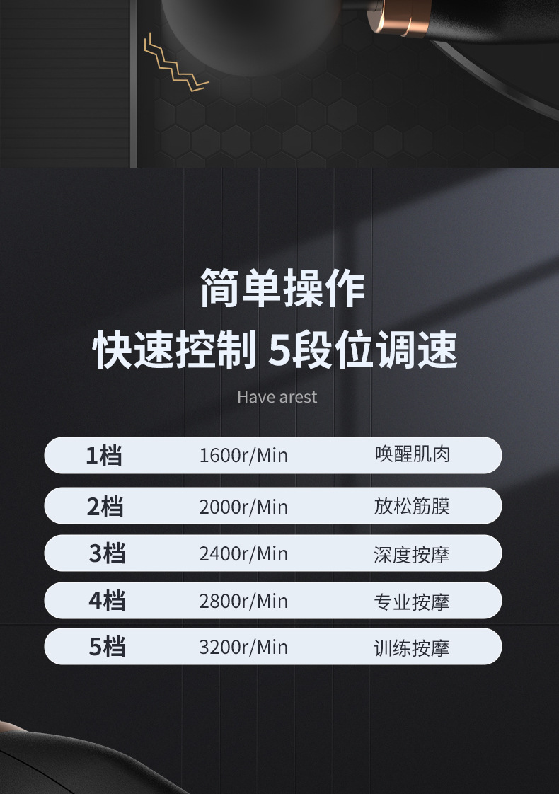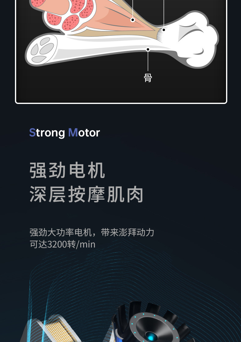 ▸强勁大功率點擊,可達3200轉/分鐘,深層按摩肌肉。