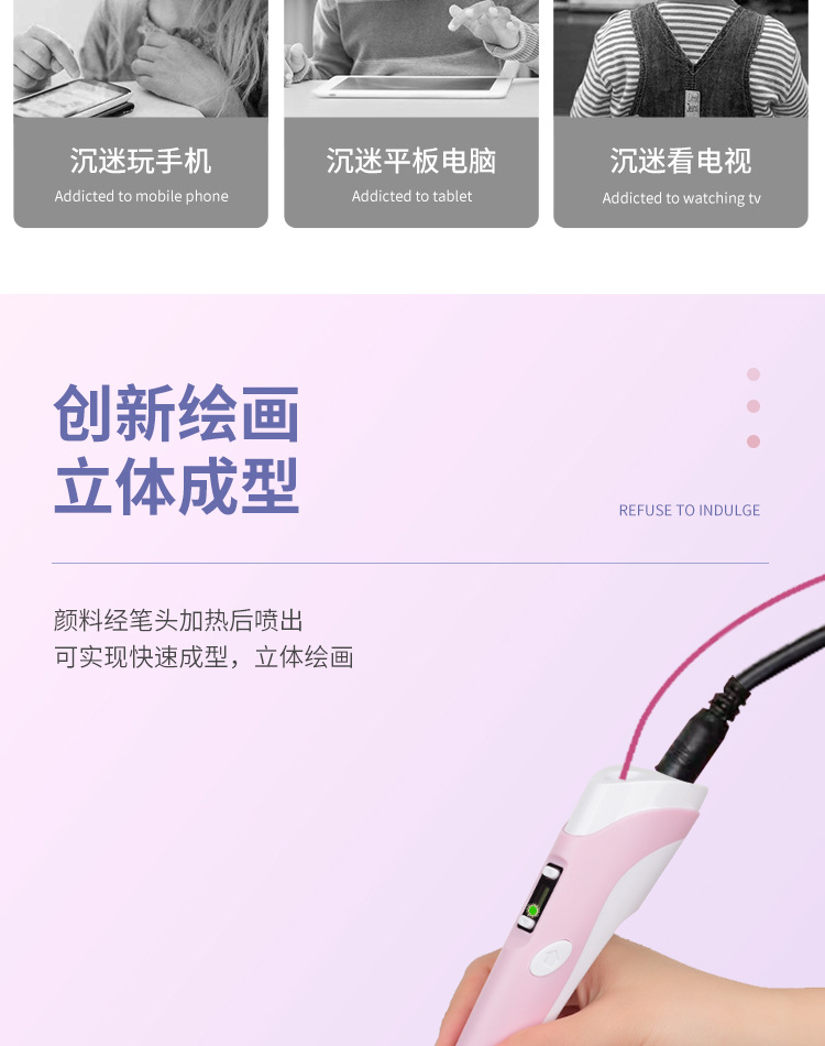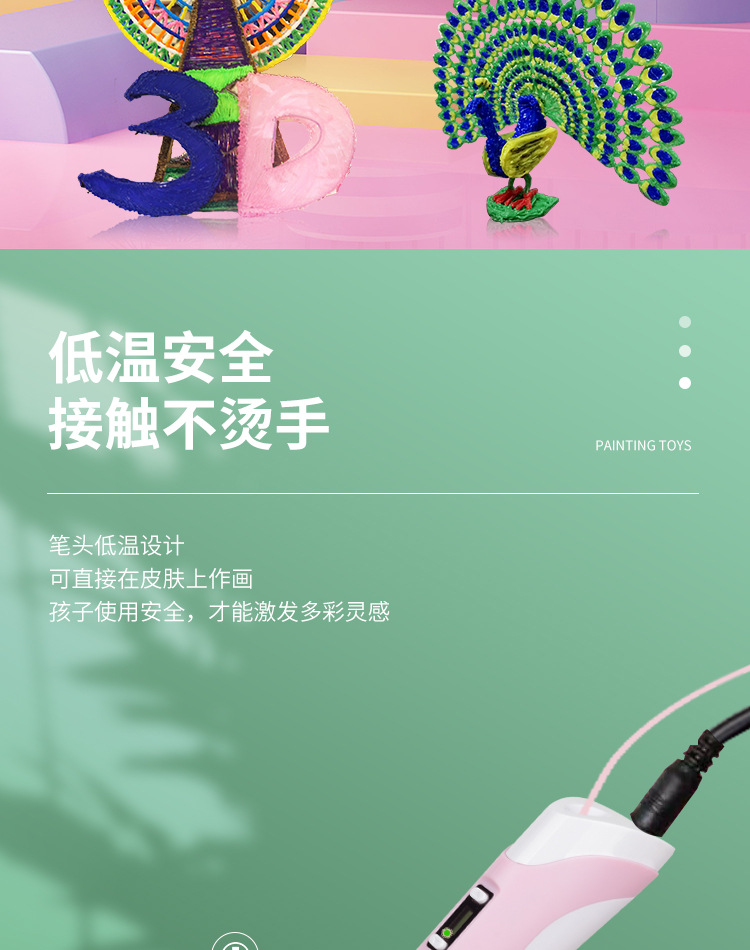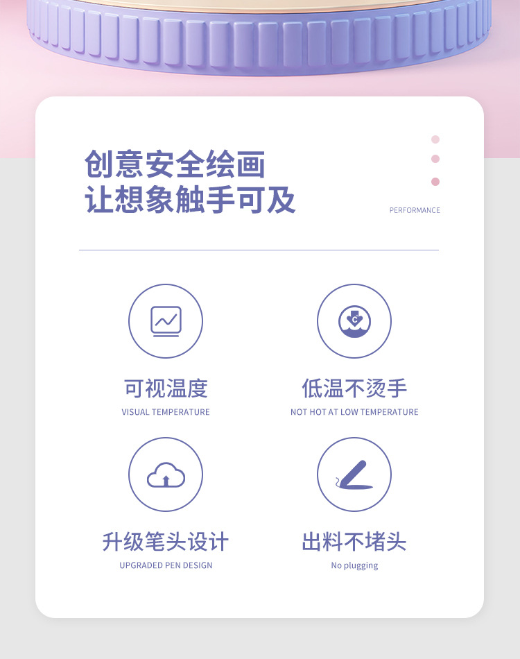▸筆頭低溫設計,只有38℃,可直接在皮膚上作畫,孩子使用也安全。
