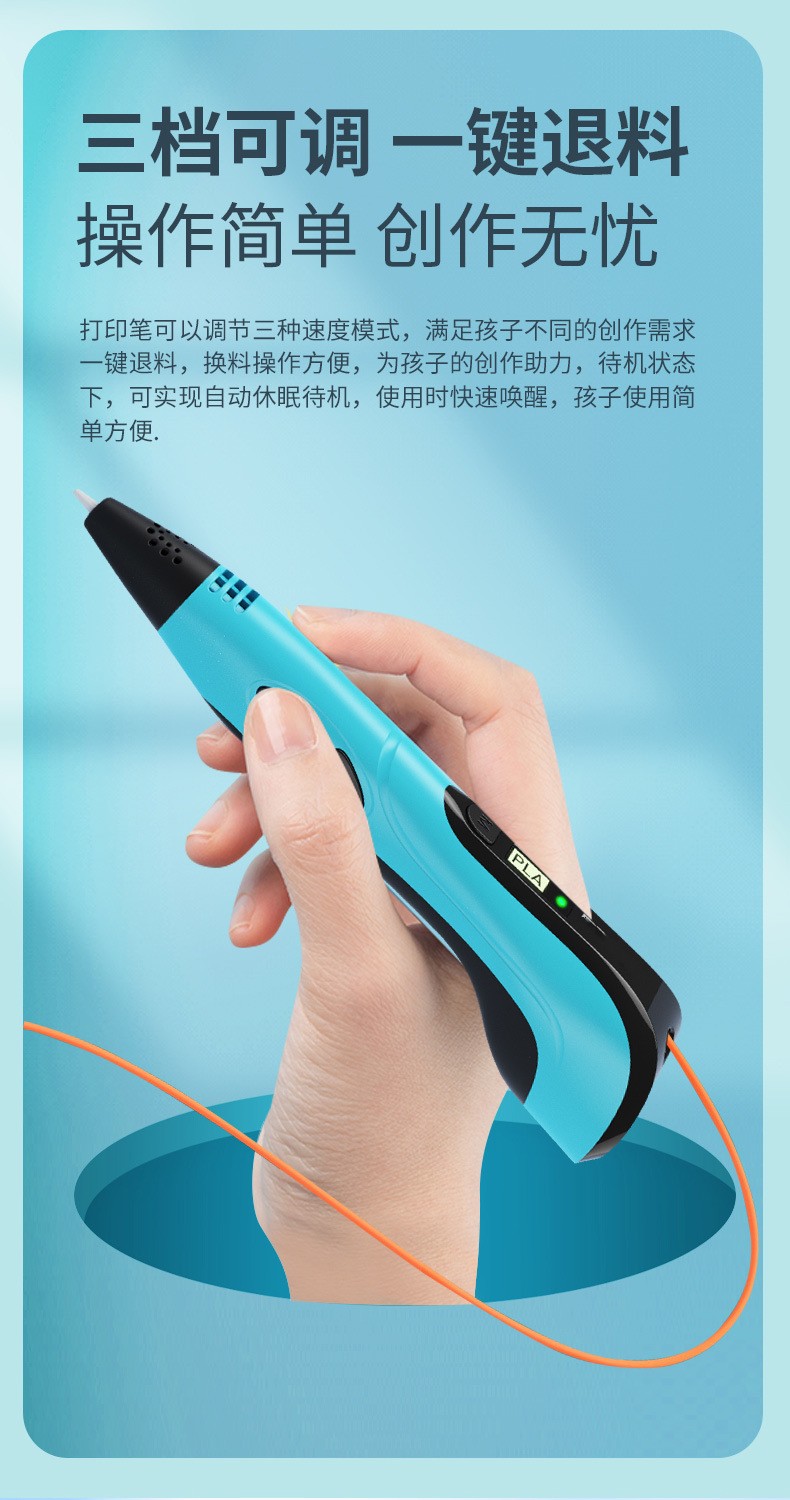 ▸三檔速度可調節,一鍵退料,換料操作方便,孩子也會使用。