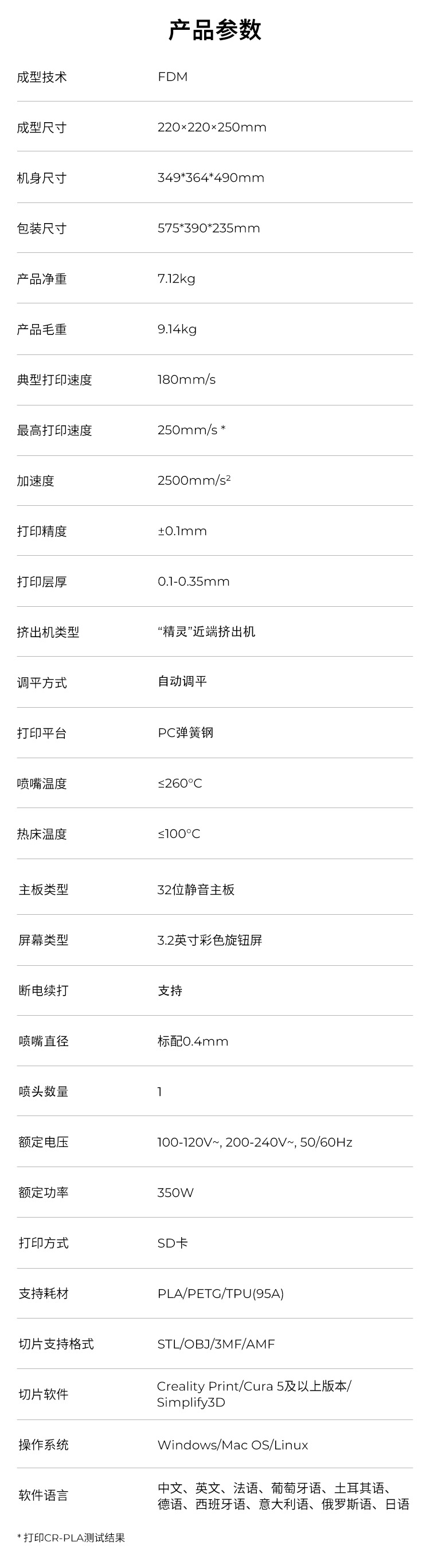 打印尺寸:220*220*250mm