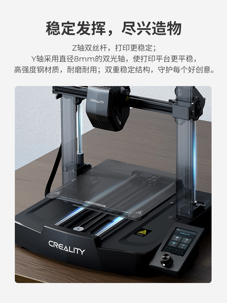▸Z軸雙絲桿,打印更穩定;Y軸採用直徑8mm的雙光軸,使打印平台更穩定。
