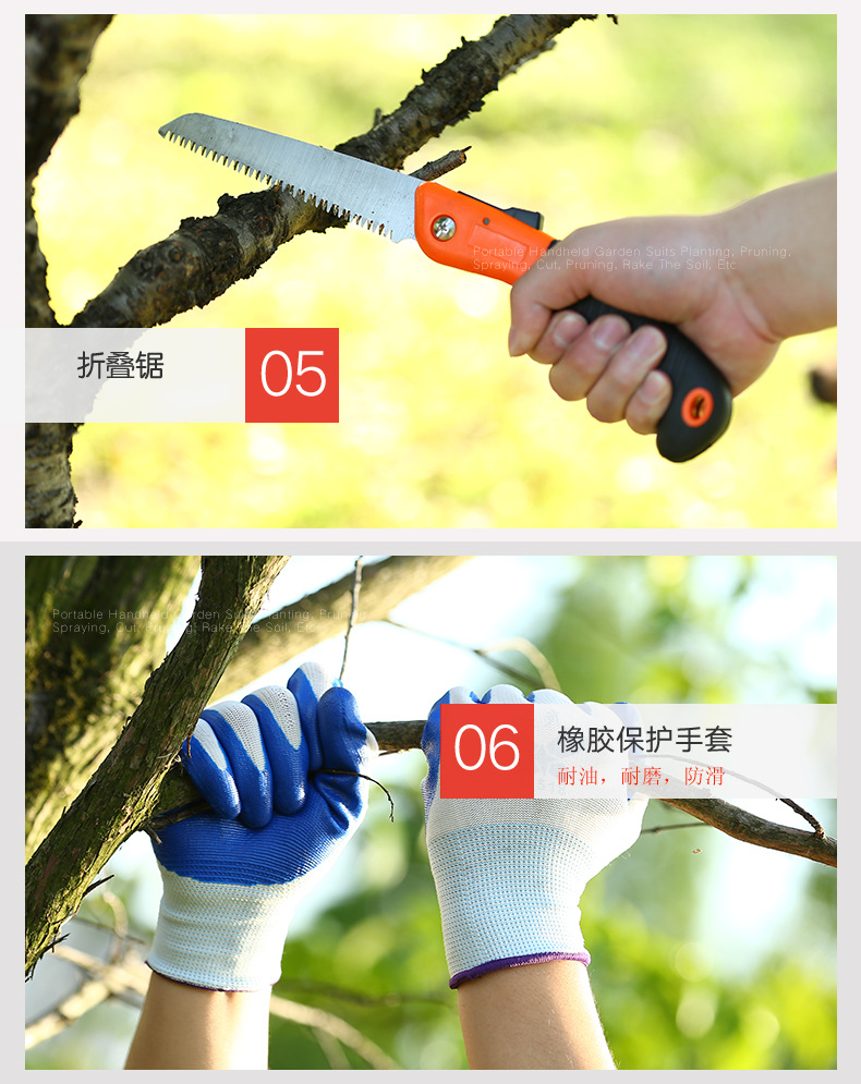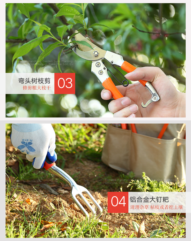 ▸整枝剪:採用全新太空鋁材質,高強度,耐高溫,抗腐蝕,輕巧便攜,手感舒適,剪切力大。
