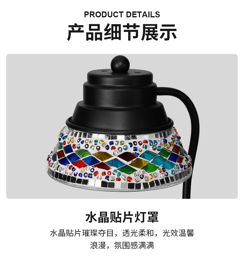 ▸水晶貼片燈罩,璀璨奪目,透光柔和,光效溫馨浪漫,氛圍感滿滿。