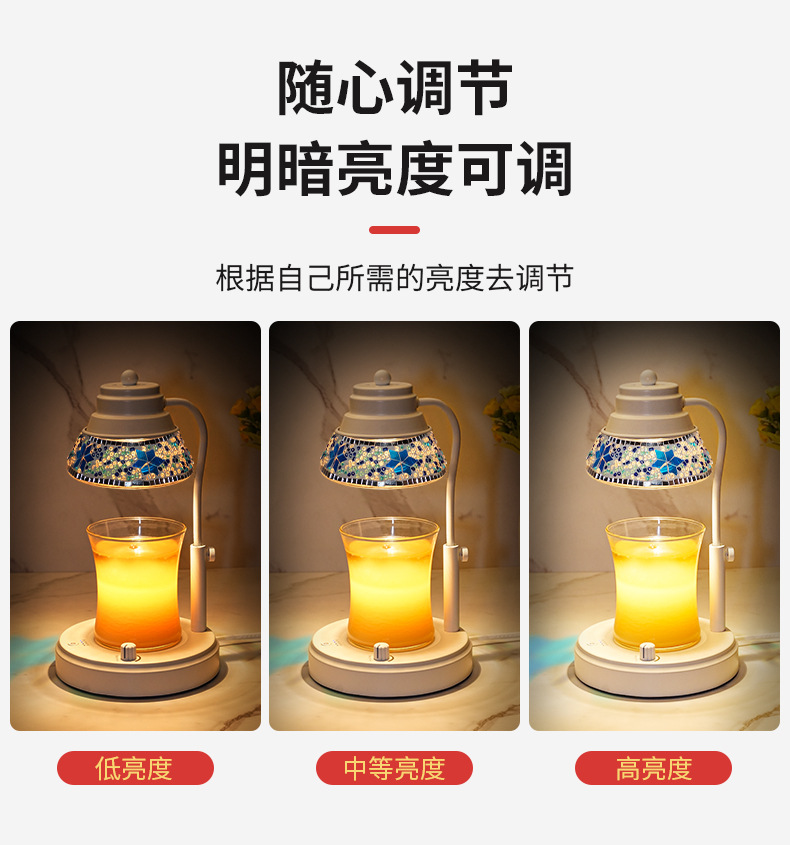 ▸無極調光旋鈕,可以自由調節亮度與溫度,燈光越亮,溫度越高,香味越明顯。