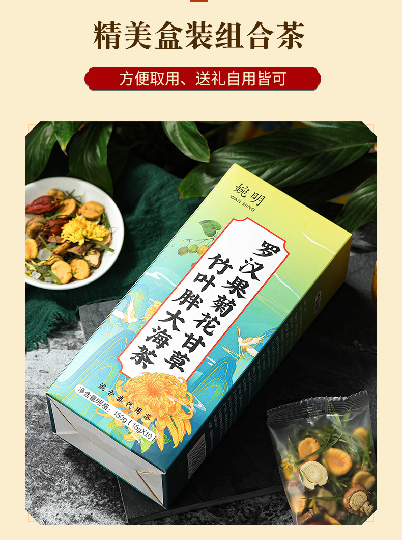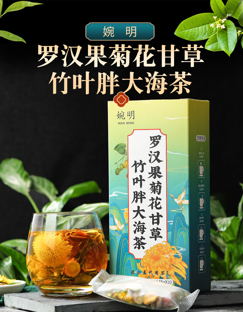 產品:婉明羅漢果菊花甘草竹葉膨大海茶