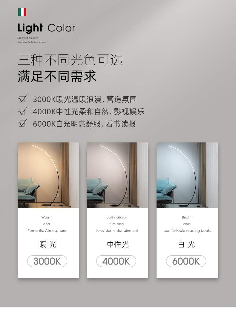 ▸暖光、中性光、白光三種不同光色可選,滿足不同需求。