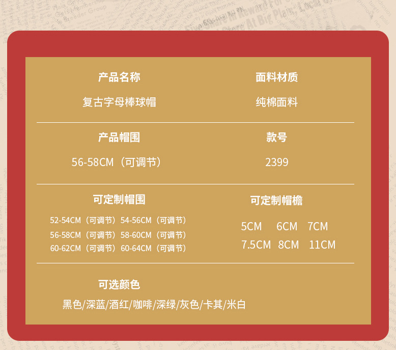 產品:復古字母棒球帽