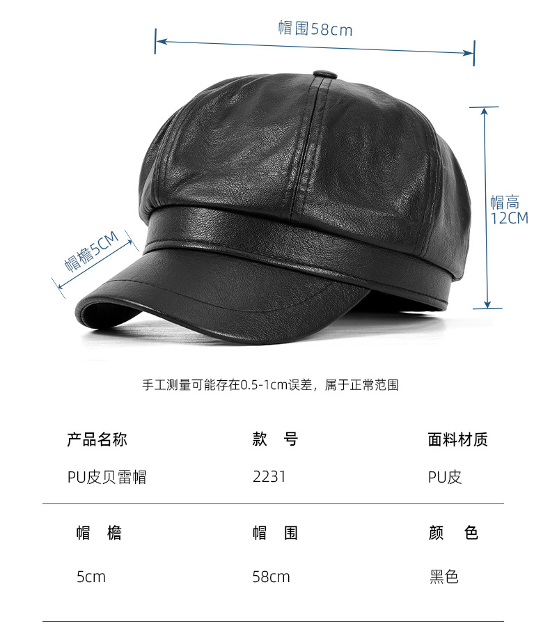 產品:PU皮貝雷帽