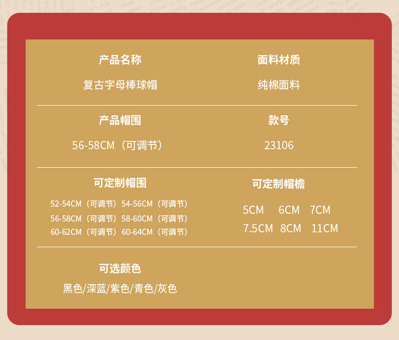 產品:復古字母棒球帽