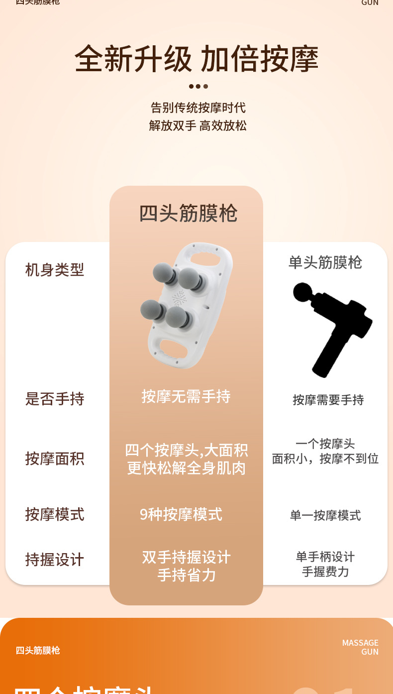 ▸四個按摩頭,更大按摩面積,效果提升。