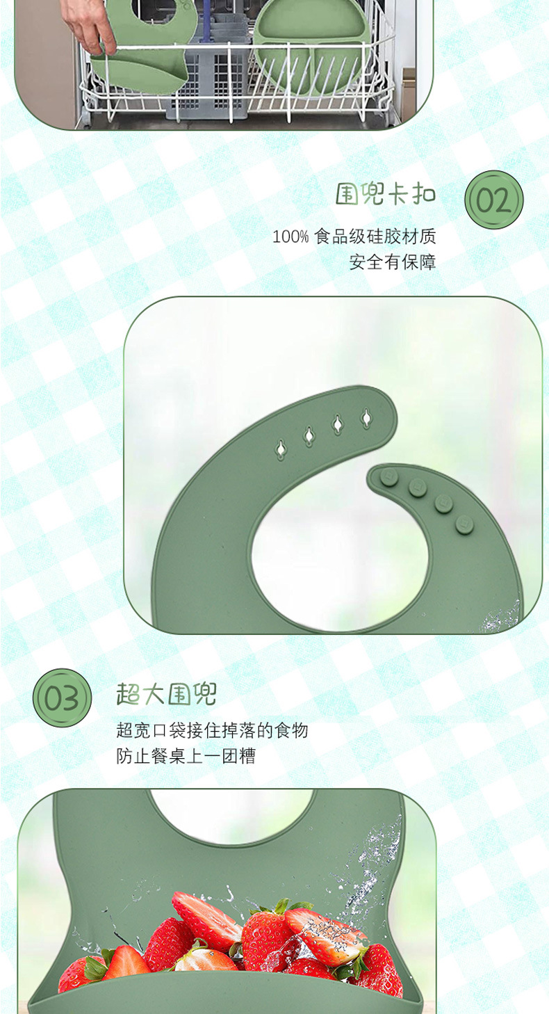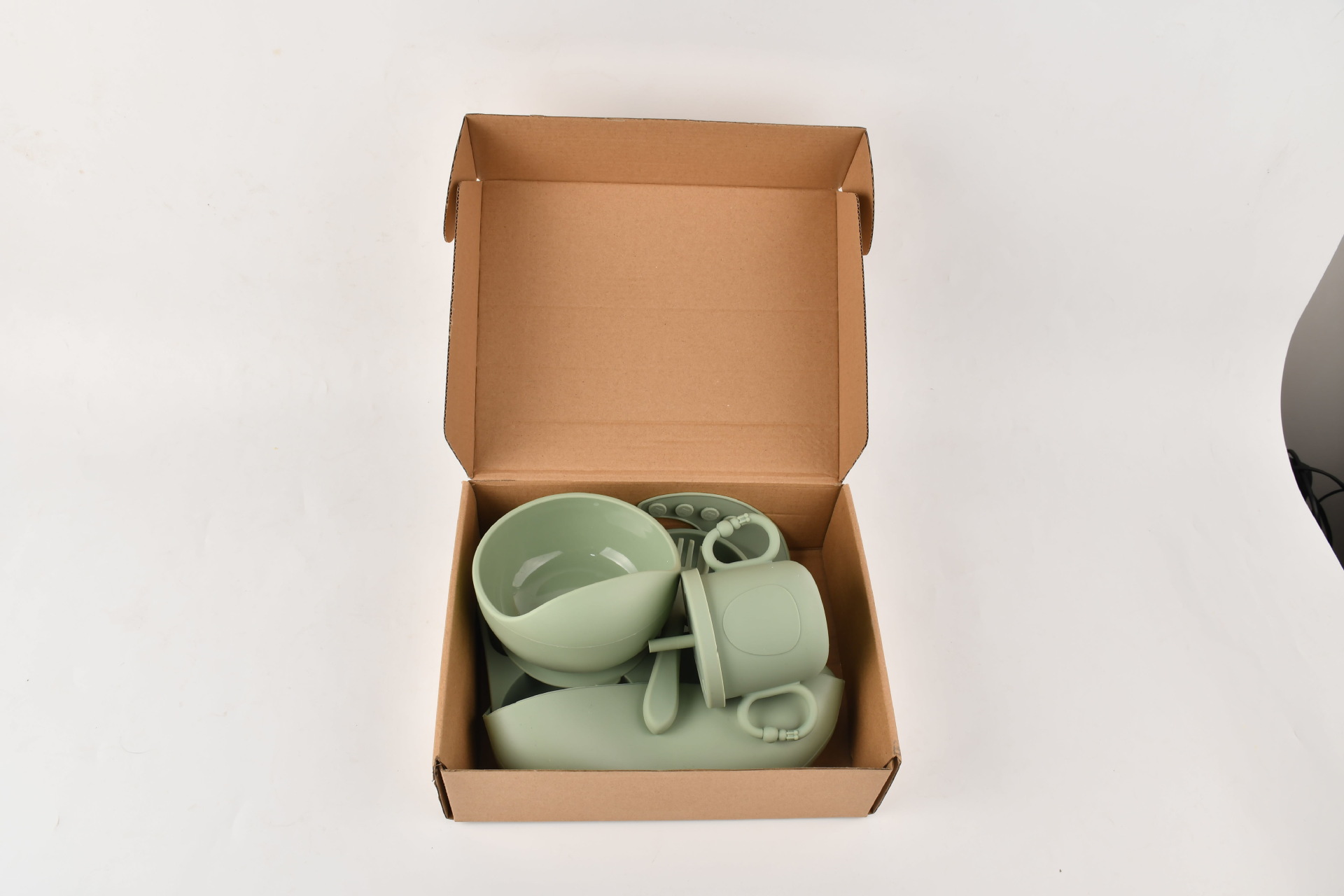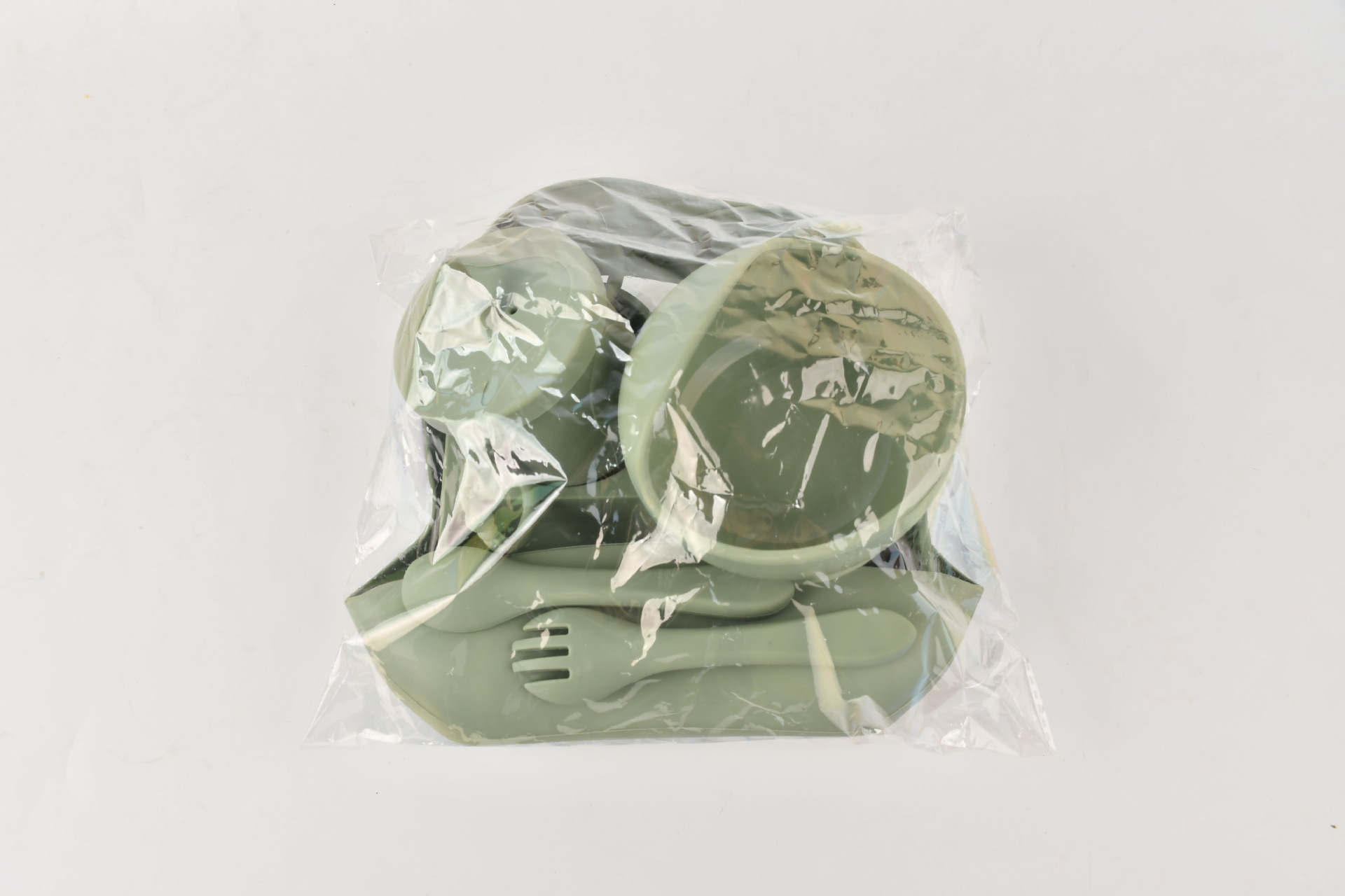 • 硅膠輔食餐盤六件套兒童寶寶輔食碗勺子杯子茶籽圍兜餐具套裝