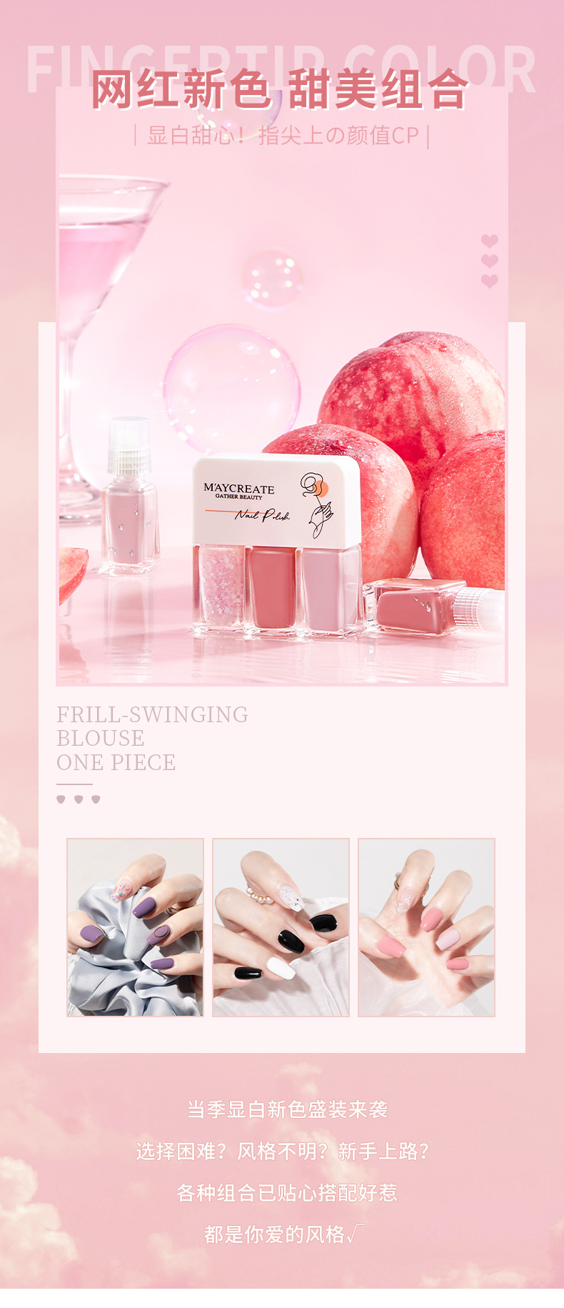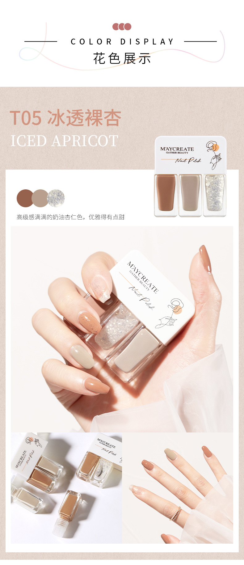 產品:Maycreate Gather Beauty 水性三色可撕拉指甲油