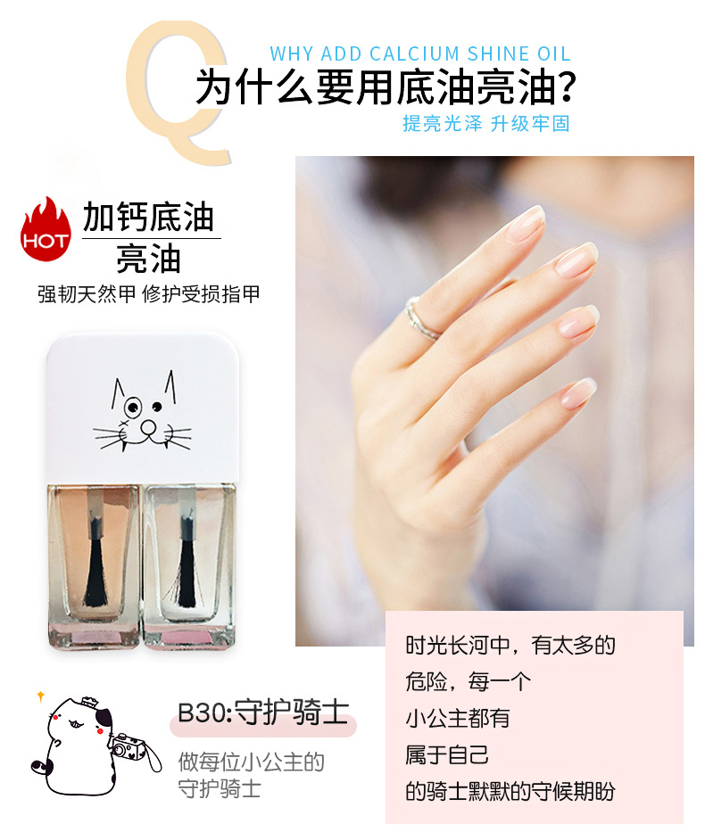 *B30為亮油和加鈣底油,強韌天然甲,修復受損指甲。