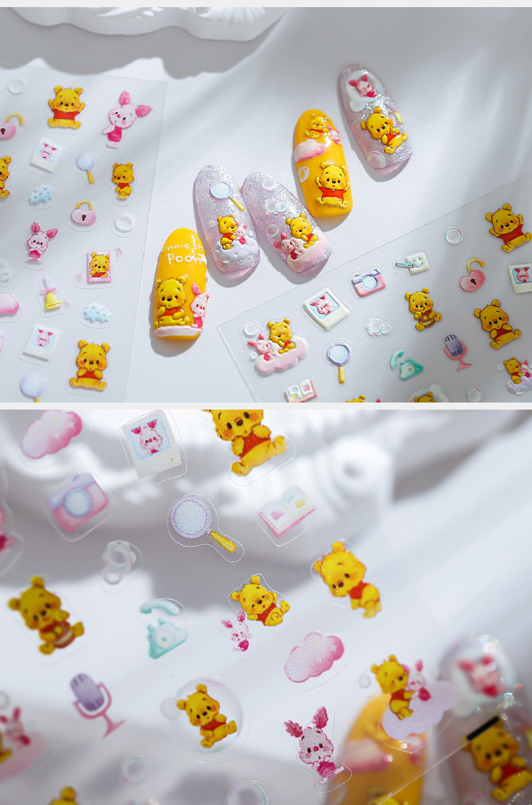 • 浮雕薄韌美甲貼紙背膠指甲貼紙飾品維尼熊立體系列