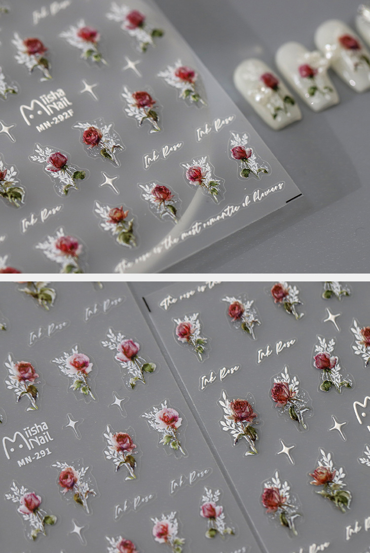 • 浮雕薄韌美甲貼紙背膠指甲貼紙飾品MN聯名系列玫瑰花