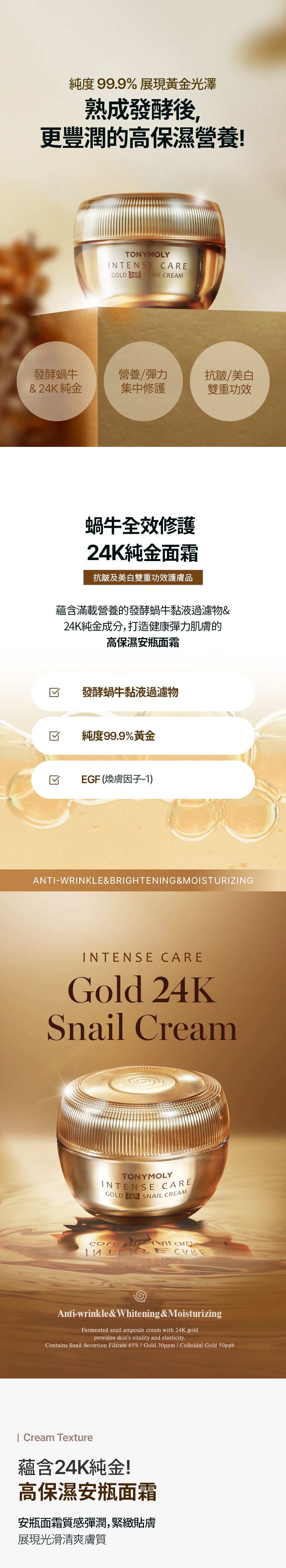 產品:TONYMOLY 托尼魅力蝸牛全效修護24K純金面霜