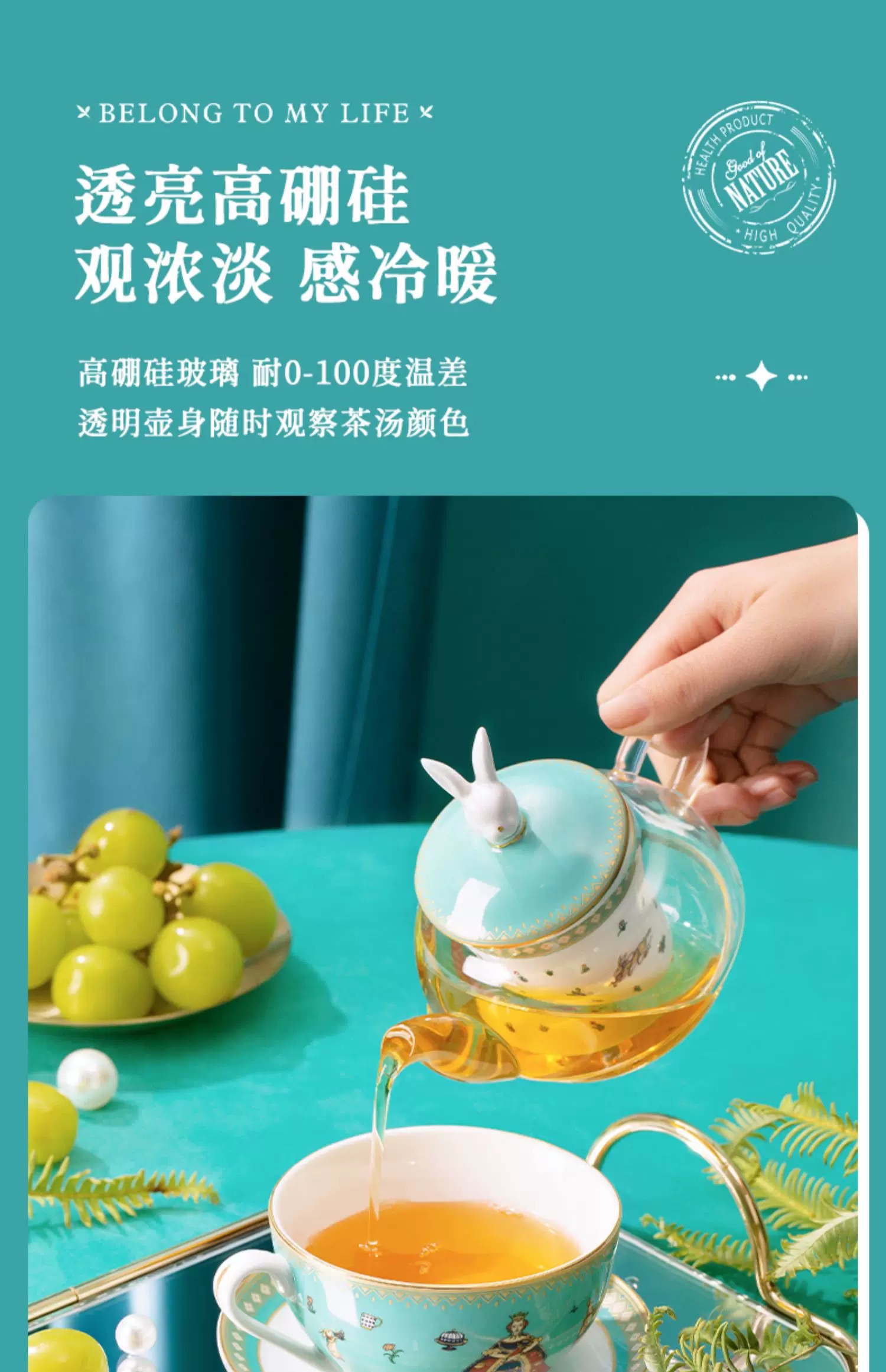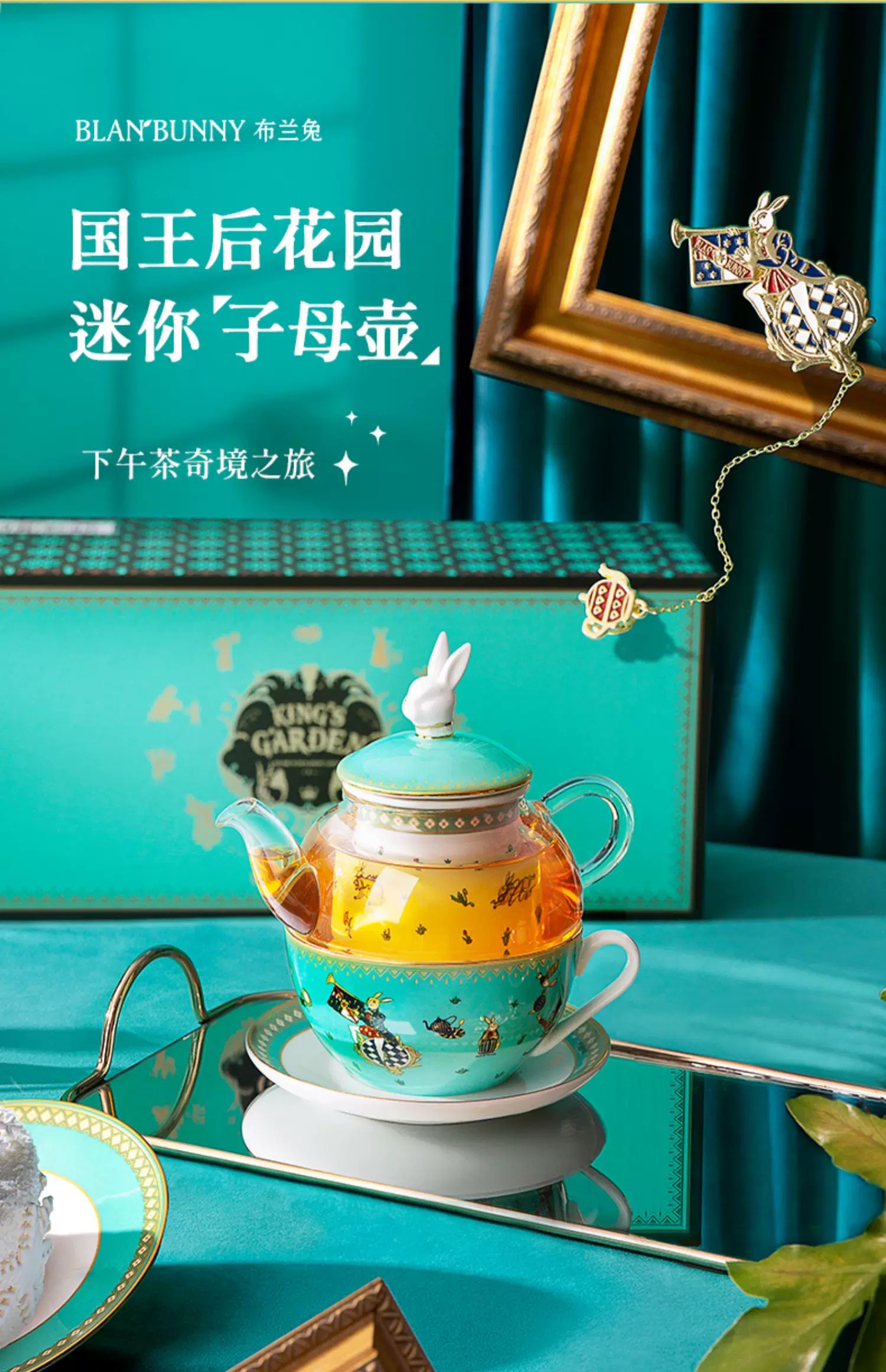 BLAN BUNNY 布蘭兔國王后花園水彩子母壺套裝禮盒粉彩茶壺骨瓷杯碟茶具套裝下午茶送禮
