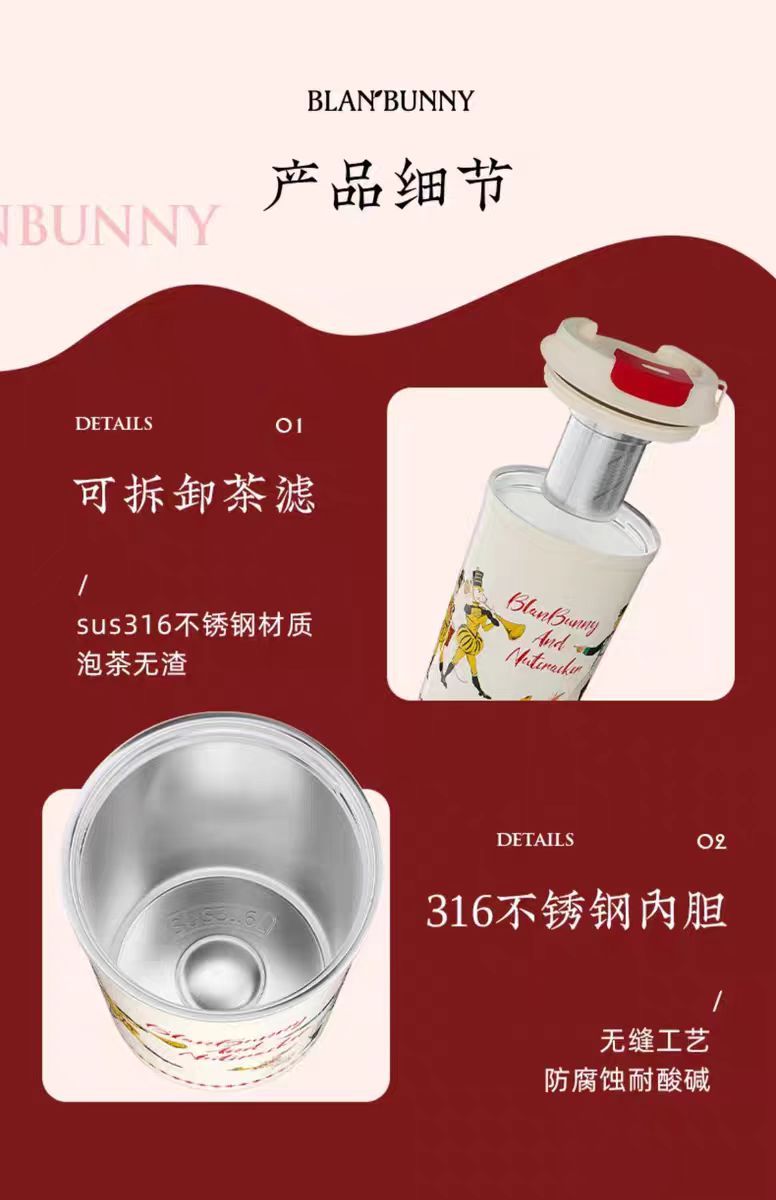 BLAN BUNNY 布蘭兔胡桃夾子茶濾保溫杯可樂杯保溫保冷冬天夏天水杯茶濾茶杯泡茶便攜原創杯子