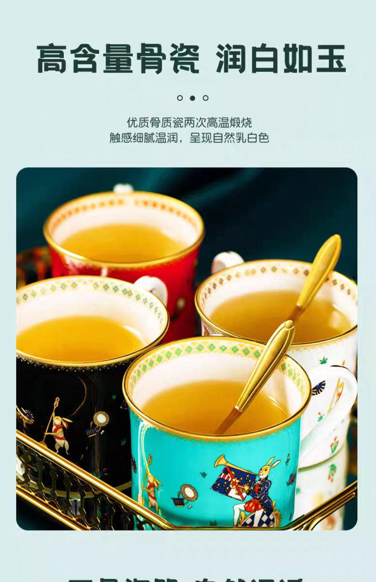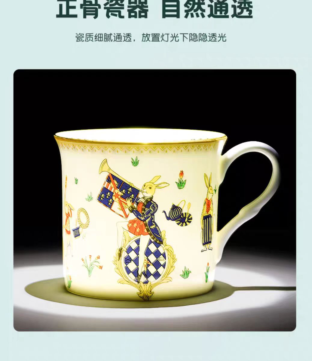 體驗優雅,布蘭兔35%骨瓷茶杯。這款茶杯由精緻的骨瓷製成,以其明亮、半透明的質量而聞名。由天然礦物骨灰製成,並在1300°C以上的高溫下燒製,這款茶杯展示出細膩、光澤的表面。在光線下,它的半透明溫暖光芒使其與普通瓷器區別開來,成為高端餐具的主打產品。