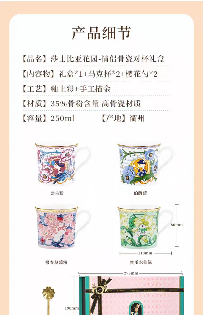 產品:BLAN BUNNY 莎士比亞花園布蘭兔骨瓷情侶對杯禮盒