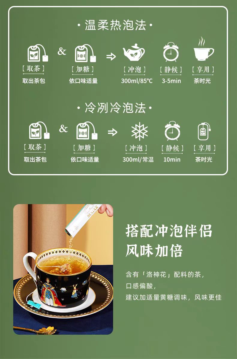 ▸不含咖啡因的天然果茶,湯色出自老洛神花,非人工色素合成,可放心飲用。