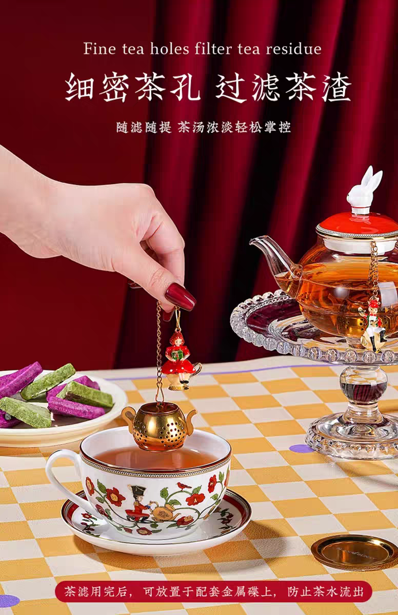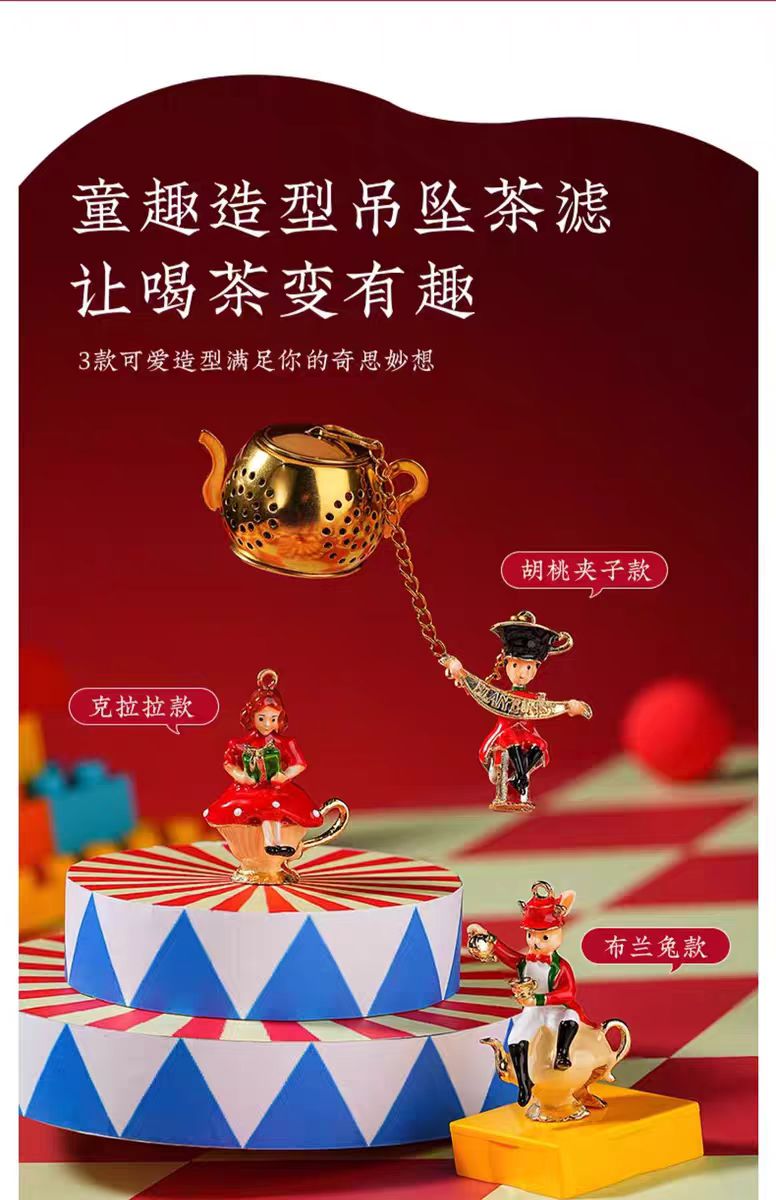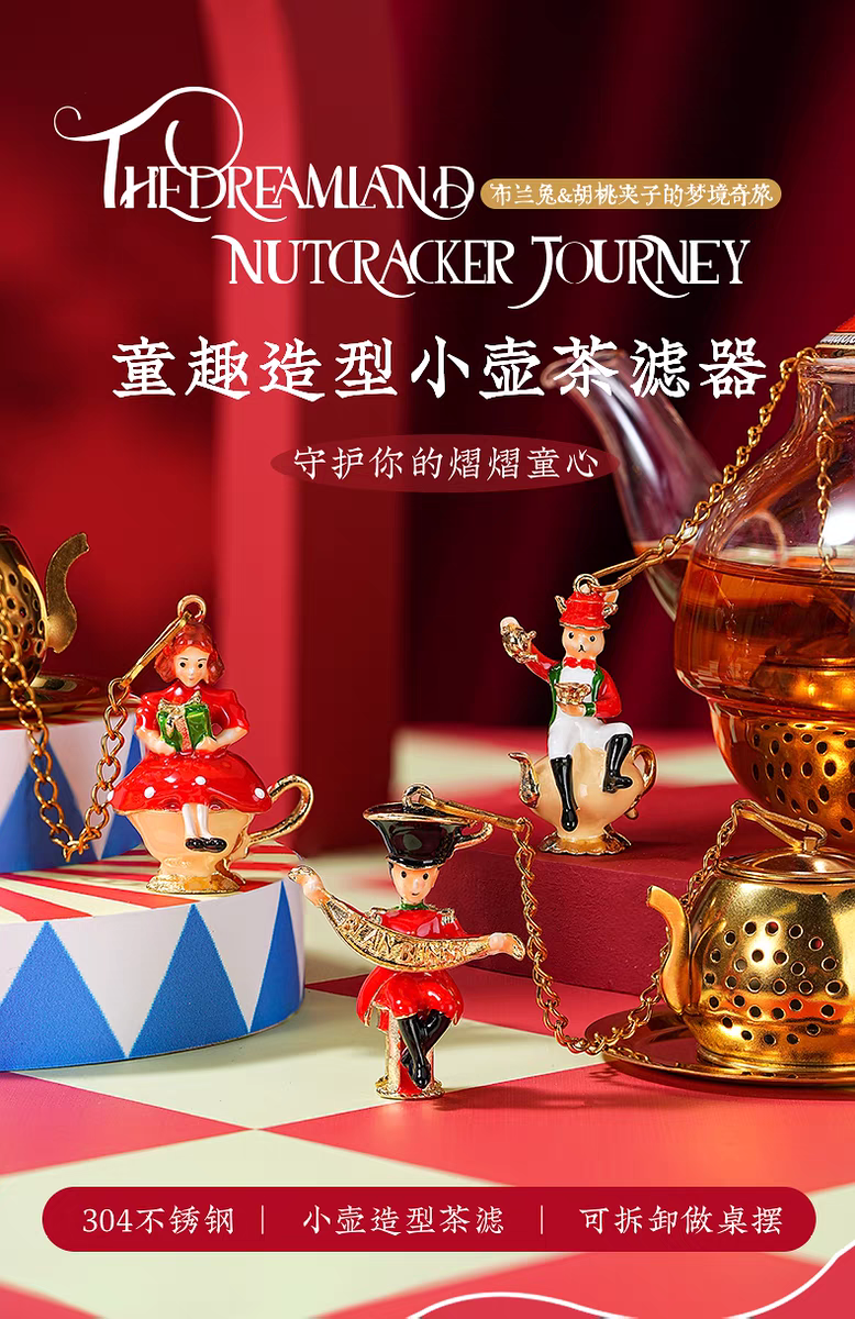 這款精美的茶濾器靈感來自經典的胡桃夾子主題,為您的品茶體驗增添一絲優雅。由高品質不銹鋼製成,這款懸掛式茶濾器不僅耐用,而且每次沖泡都能確保純正濃郁的風味。其獨特的吊墜採用豐富的琺瑯彩繪,是任何茶愛好者的完美配件。