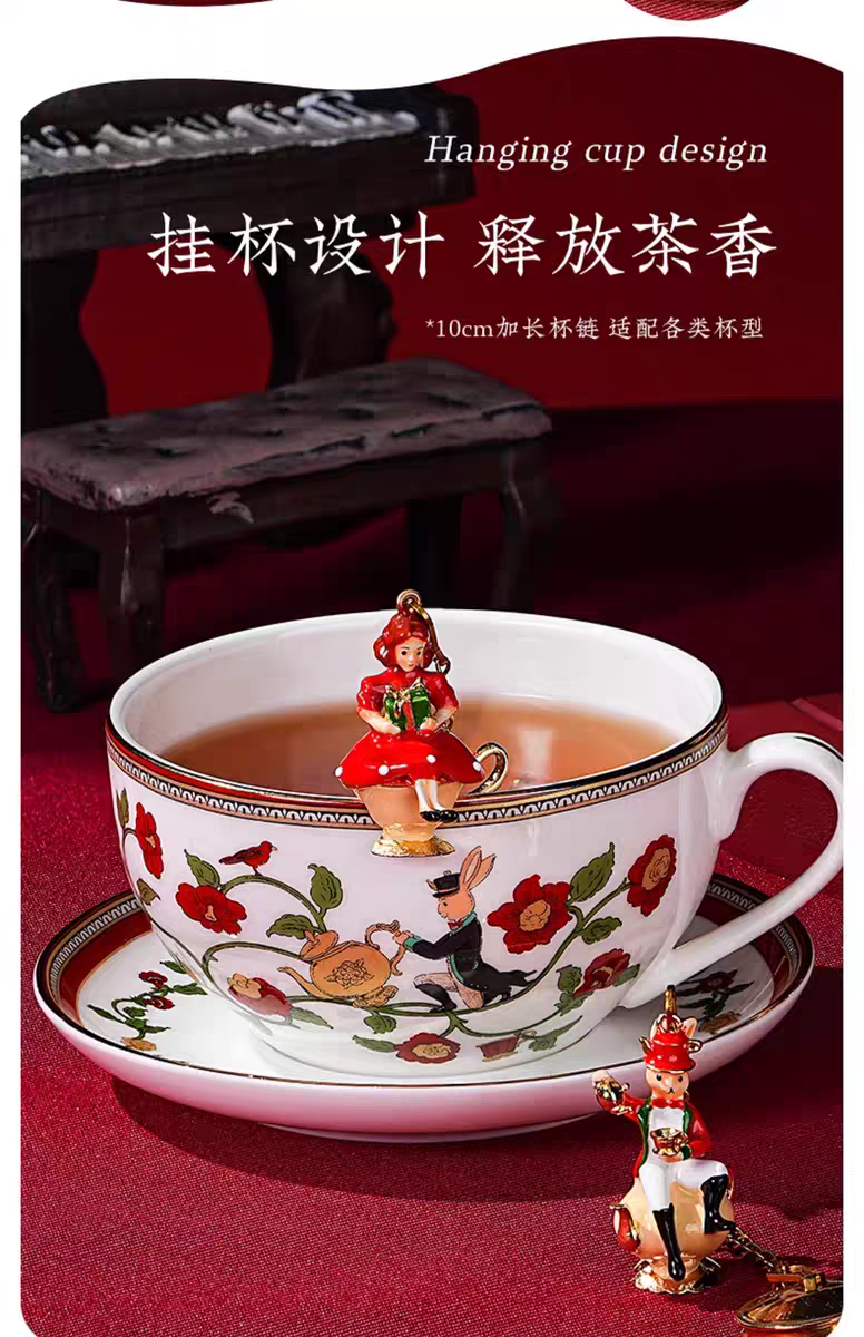 獨特的兔子蓋兼具實用性,邊緣的創意凹槽可以牢固地固定您的茶匙。專利的纖腰杯身舒適地貼合您的手,而雙藤手柄為您的茶道增添了一絲優雅和高貴。這款骨瓷杯由天然礦物骨灰製成,不含鉛和鎘,確保安全愉快的飲茶體驗。