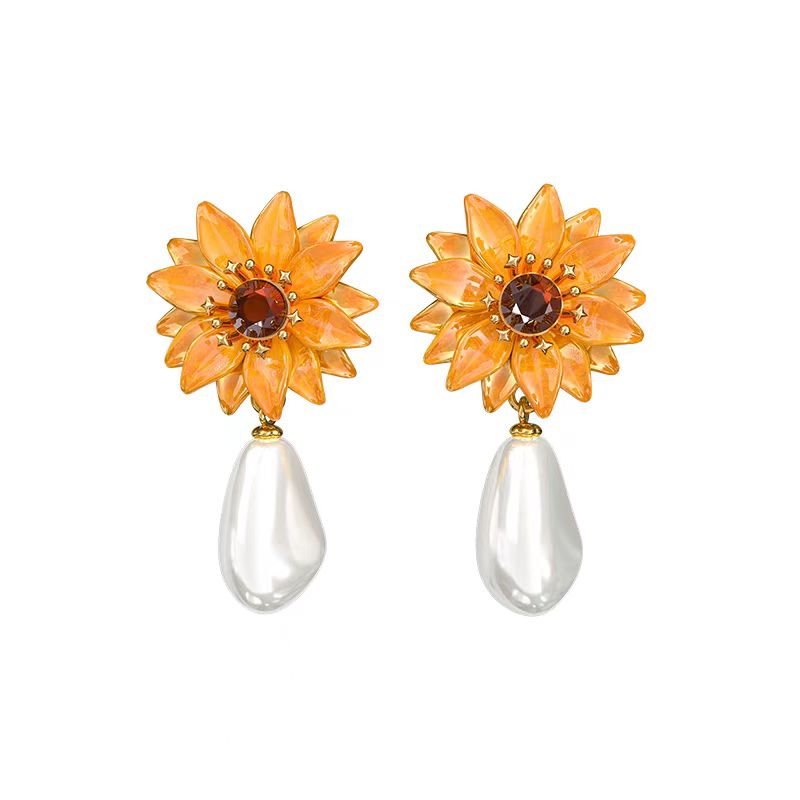 BLAN BUNNY 布蘭兔梵高向日葵-太陽花首飾水晶玻璃巴洛克珍珠耳釘耳環耳飾小眾款項鏈吊墜飾品