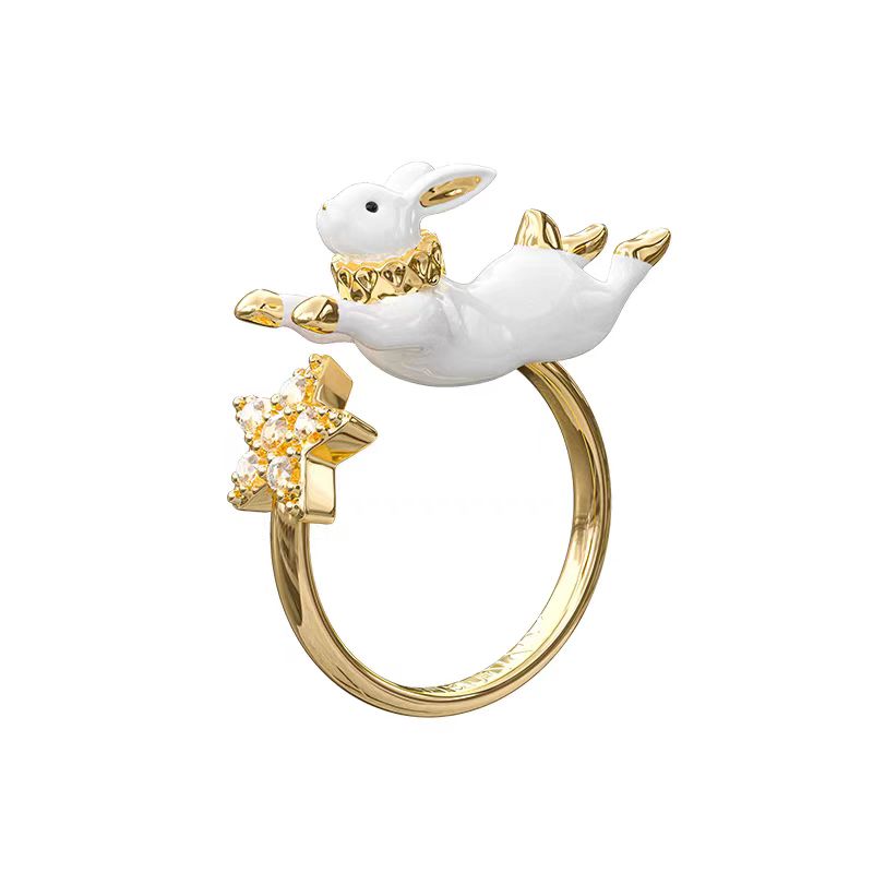 BLAN BUNNY 布蘭兔梵高向日葵-花叢兔首飾水晶玻璃珍珠項鏈手鏈女生小眾設計感耳釘兔子戒指禮物