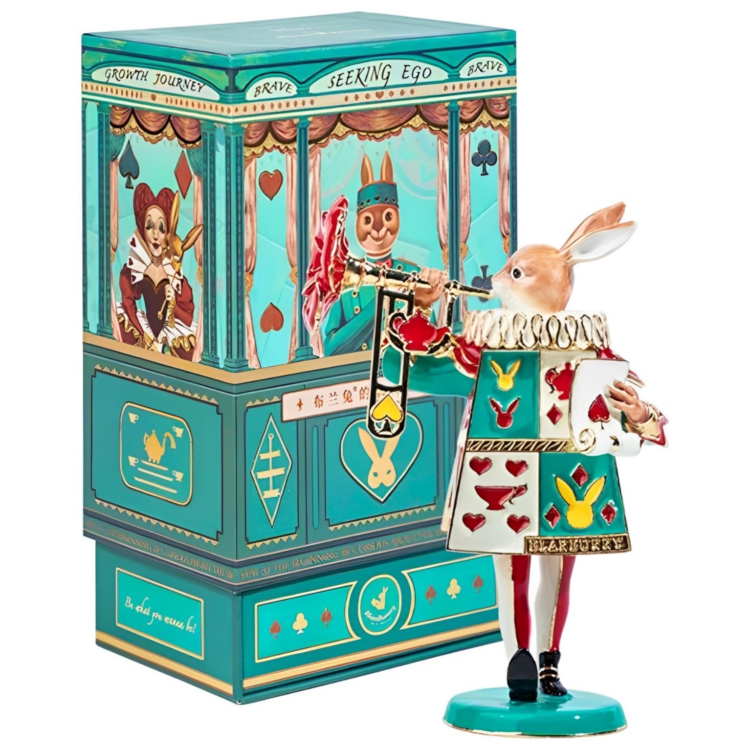 我們的“三月兔音樂盒”是“愛麗絲自我發現之旅”珠寶盒系列的一部分,靈感來自《愛麗絲夢遊仙境》。三月兔手持裝滿木槿花茶的茶壺,優雅地為尊貴的客人們服務。當音樂盒播放時,迷人的旋律為愉快的音樂下午茶奠定了基調,茶與音樂完美融合。