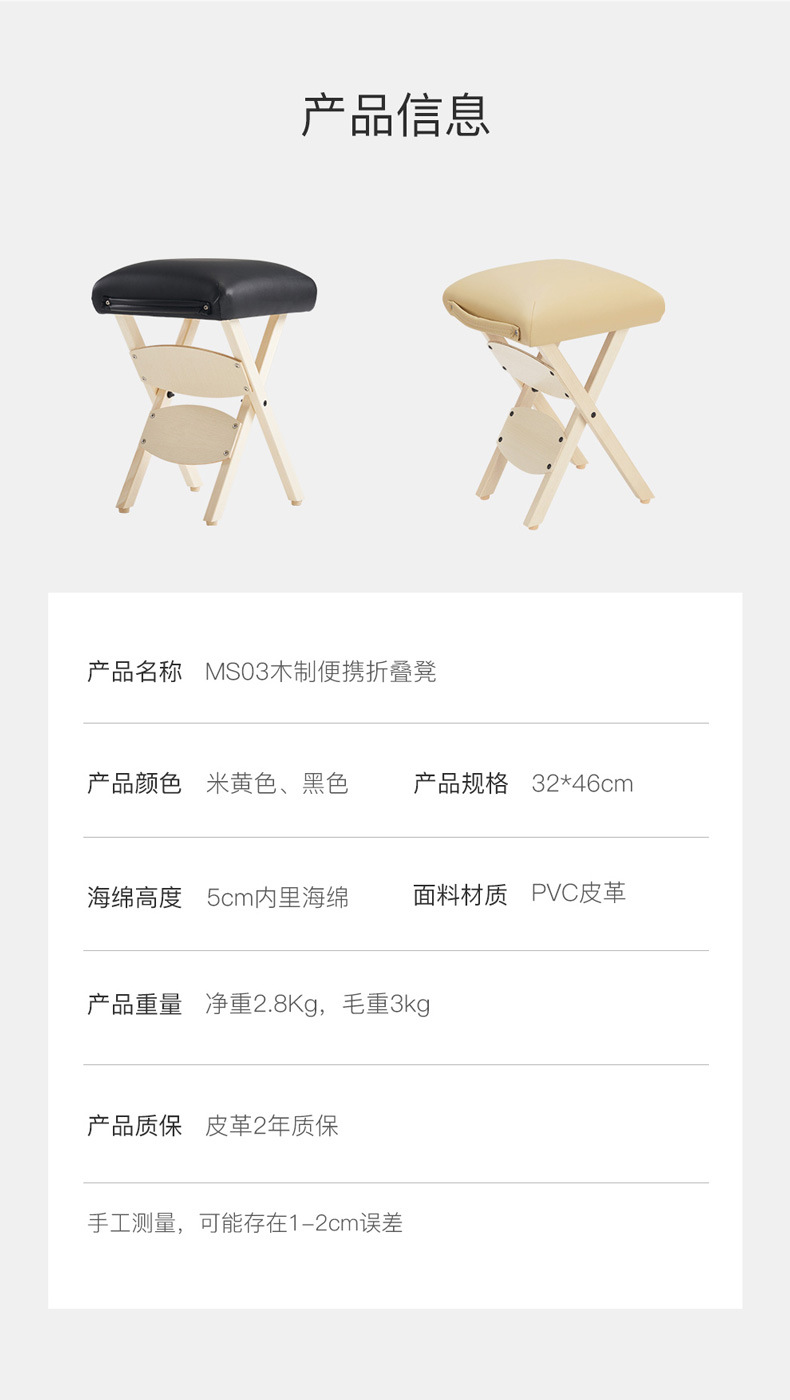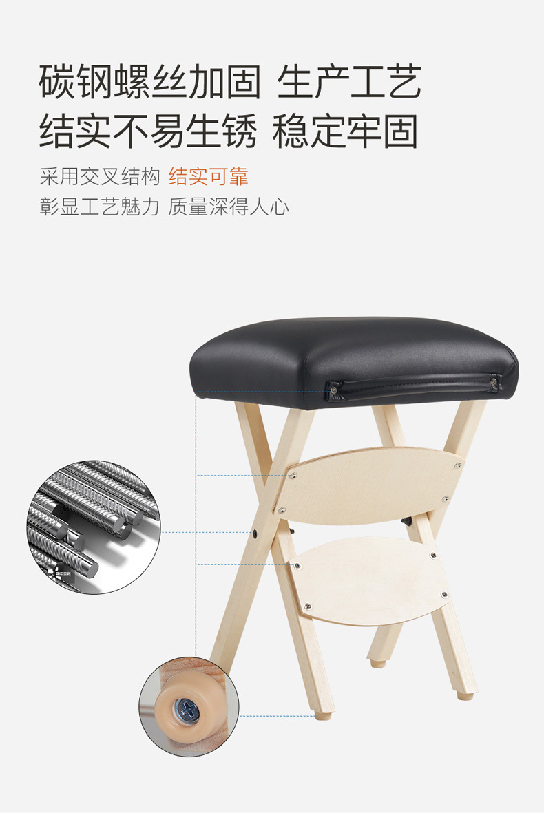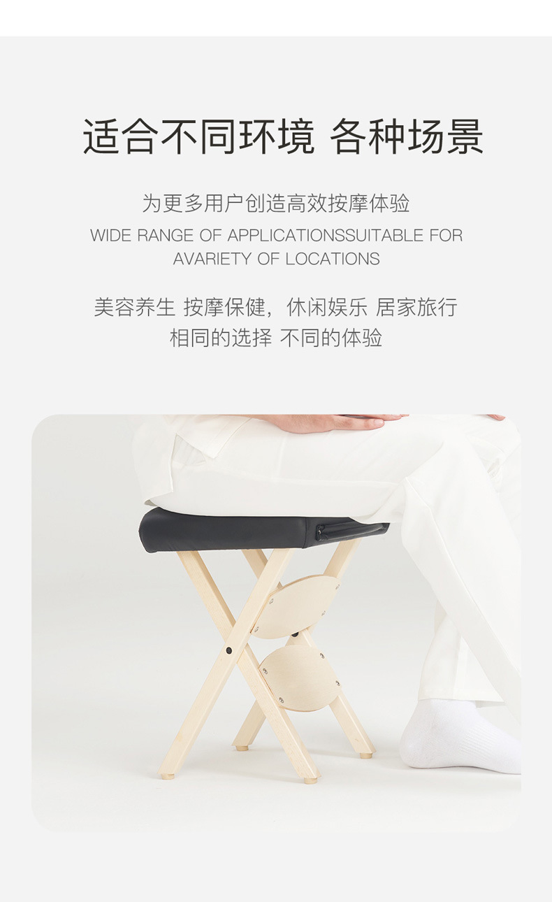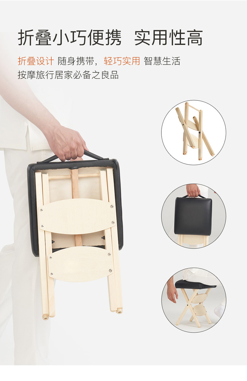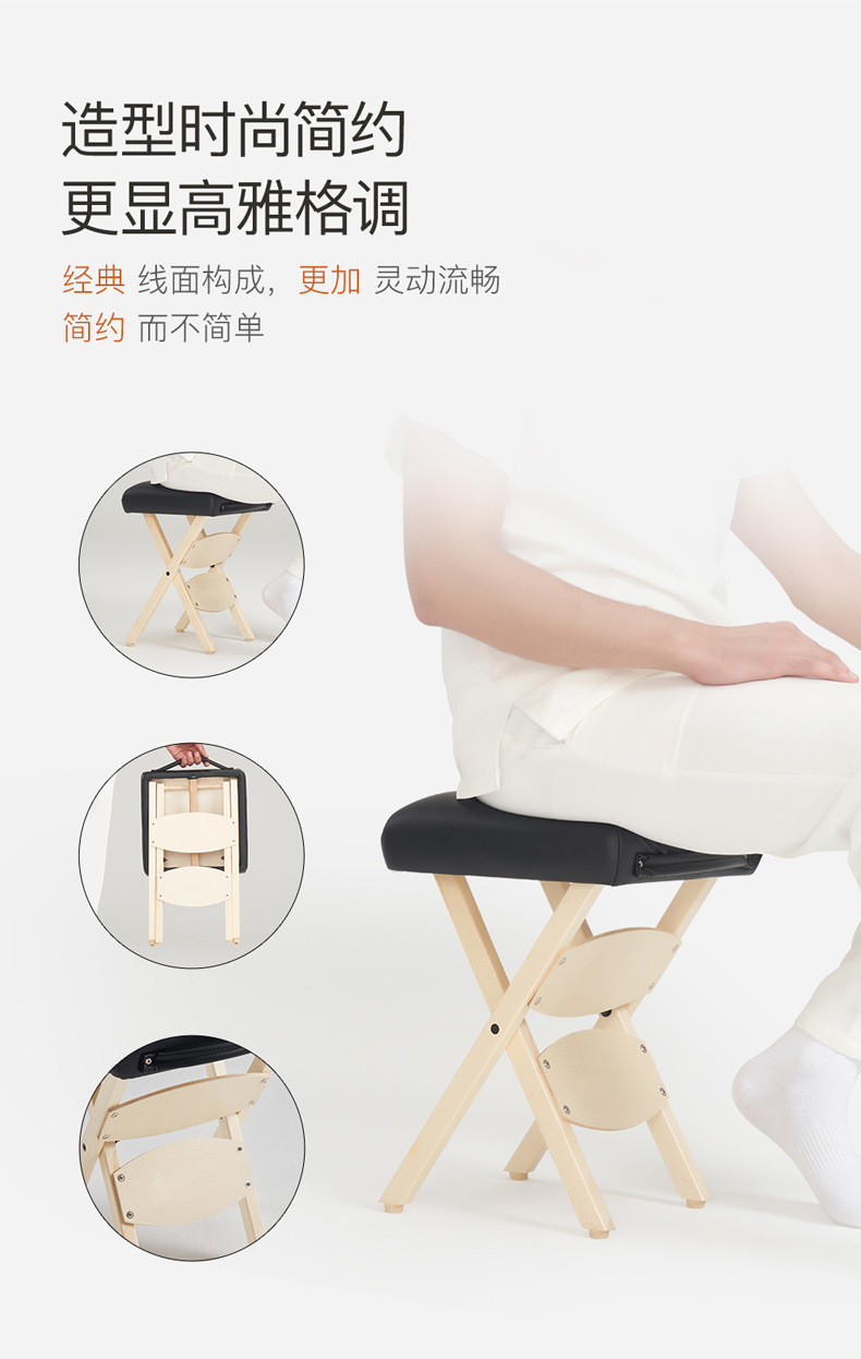 [超便攜折疊凳] 這款令人驚嘆的便攜式木凳可折疊平放,便於攜帶和存放,是您生活中的完美伴侶。重量不到5磅,輕便且方便。無論您需要在工作、家庭使用,還是各種專業場所如沙龍、水療中心或醫生辦公室中使用,這款折疊按摩凳都是移動按摩師、紋身工作室等的理想選擇。