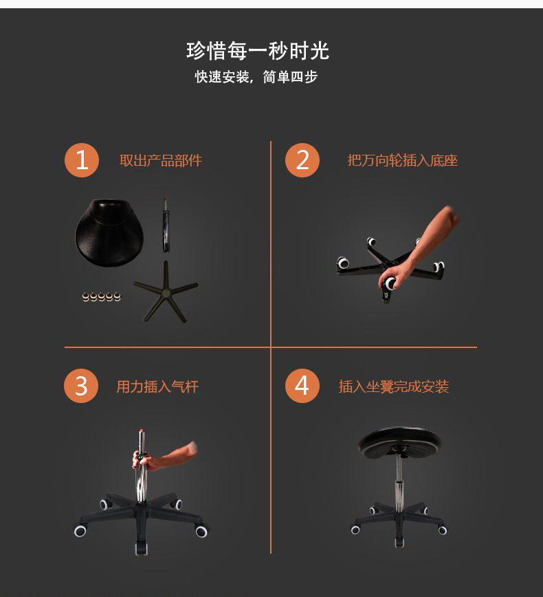▸座椅下的超大鋼製安裝板:比其他凳子大 2 倍,更加安全