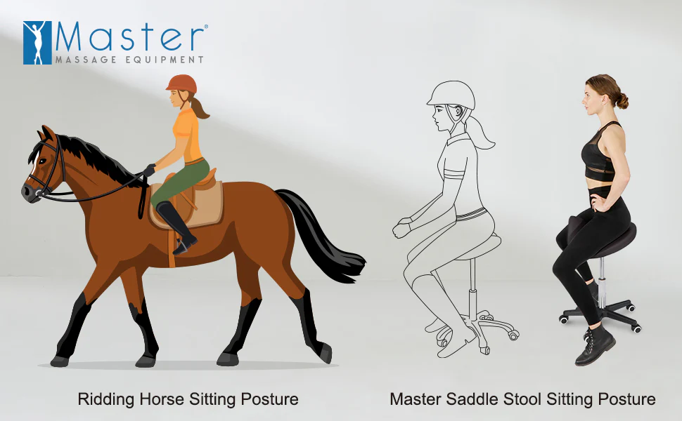 Master 人體工學滾動鞍座凳 設計為您的脊椎提供更多舒適和支撐(這種設計減少了背部的疼痛壓力)。它還包括您在高端辦公椅中會找到的可調氣動升降裝置,以及超強的尼龍五星底座,提供更多的強度。