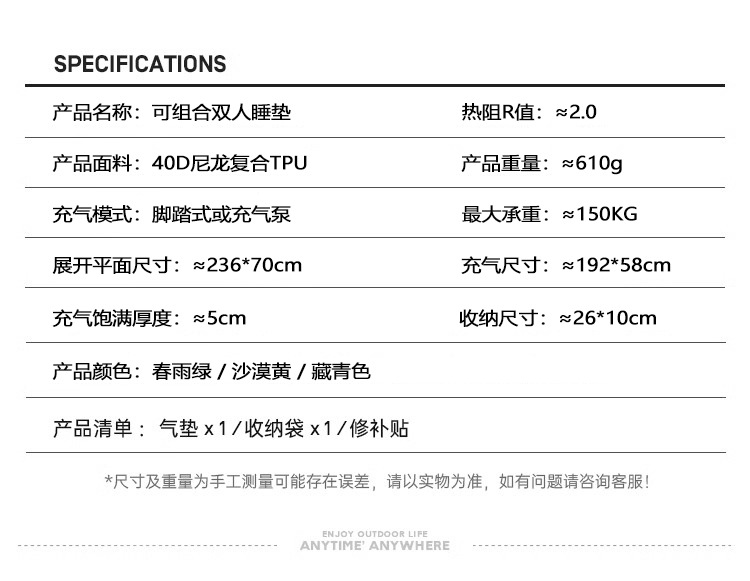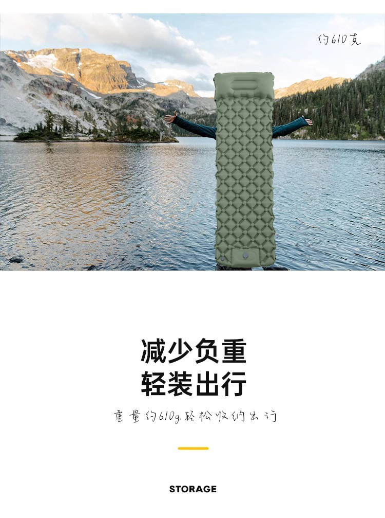 ▸輕量化充氣墊,隨處可帶,戶外露營必備。