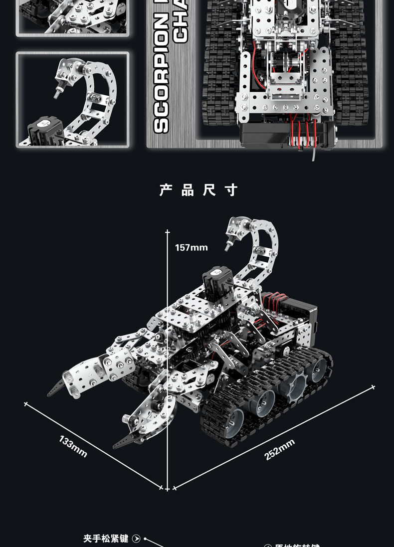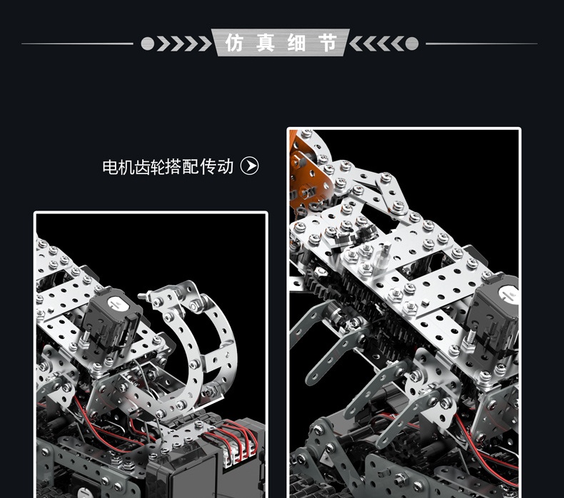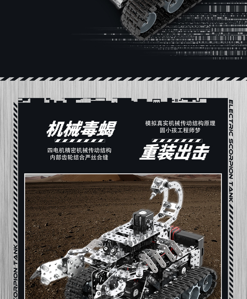 這款1034片的遙控蠍子坦克具有精密的3D金屬拼圖設計,提供具有挑戰性和沉浸感的組裝體驗,提升創造力和靈巧度。 配備先進的12通道遙控器,使用2.4G遙控器控制蠍子坦克的全方位移動,實現逼真的動作和真實的工程遊戲。 精密齒輪傳動,配備四個電機和互鎖齒輪,這款模型準確模擬了真實的機械結構,激發了年輕工程師和成人的靈感。 使用優質、無毒的金屬材料製成,每個零件都有光滑、精緻的邊緣,確保安全和愉快的組裝體驗。 這款套件是愛好者和STEM愛好者的獨特禮物,無論是節日還是收藏,這款套件都是對工程或金屬拼圖充滿熱情的人的完美禮物。